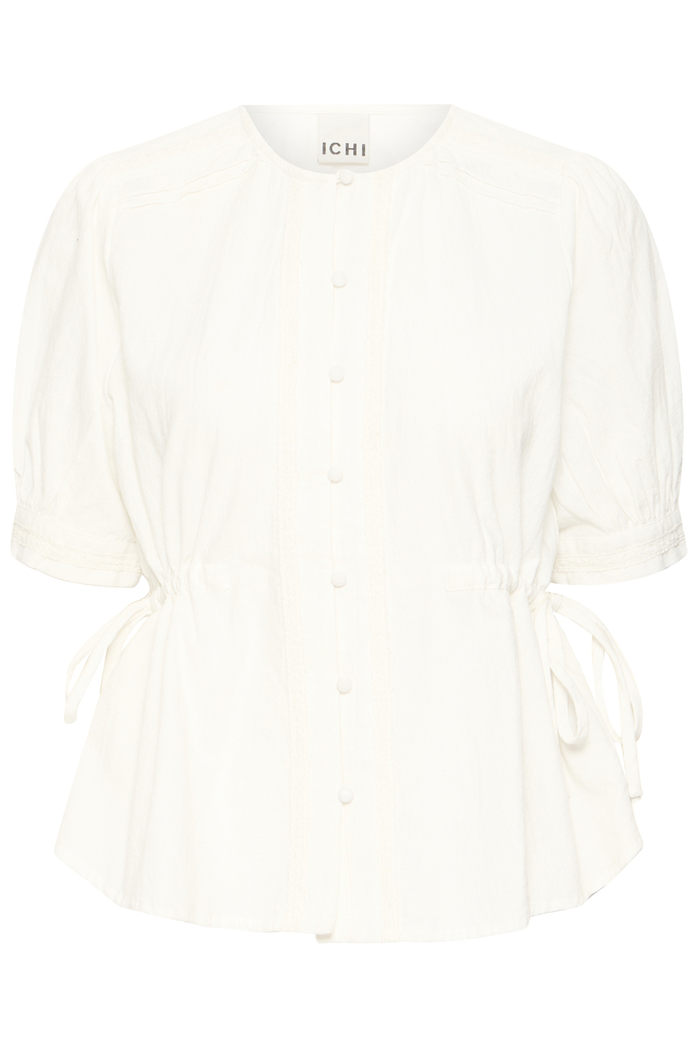 Deze elegante Ichi damesblouse, in de kleur 114201 Cloud Dancer, is een stijlvolle toevoeging aan je lente garderobe. De blouse valt op door een subtiele structuur en een moderne ronde hals. Dankzij de regular pasvorm en korte mouwen biedt deze blouse zowel comfort als een moeiteloze stijl. Met de knoopsluiting aan de voorkant creëer je een verfijnde look die perfect past bij casual en alledaagse outfits. Gemaakt van 100% katoen, voelt deze blouse zacht en aangenaam aan op de huid. De strikdetails aan de zijkanten voegen een speels accent toe zonder te overheersen. Deze blouse is ideaal voor verschillende gelegenheden, of je nu een relaxte dag in de stad doorbrengt of een informele lunchdate plant. Combineer het met een lichte jeans voor een luchtige, alledaagse uitstraling of draag het onder een effen blazer voor een iets chiquere look.
