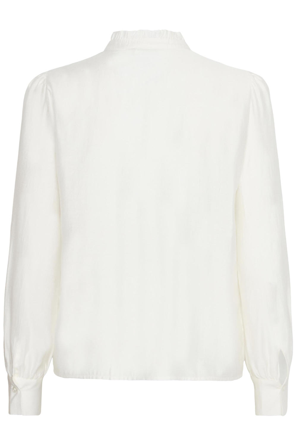 Deze elegante damesblouse van Ichi, de "114201 Cloud Dancer", is een stijlvolle toevoeging voor je herfstgarderobe. Vervaardigd uit een zachte mix van 92% viscose en 8% polyester, zorgt deze blouse voor een comfortabele draagervaring. De blouse komt in een subtiele crèmekleur en is voorzien van verfijnde ruches langs de knoopsluiting, wat een speels en toch verfijnd accent toevoegt aan je look. De high neck en de lange mouwen maken het een geschikte keuze voor koelere dagen, terwijl de regular fit je een ontspannen gevoel geeft.