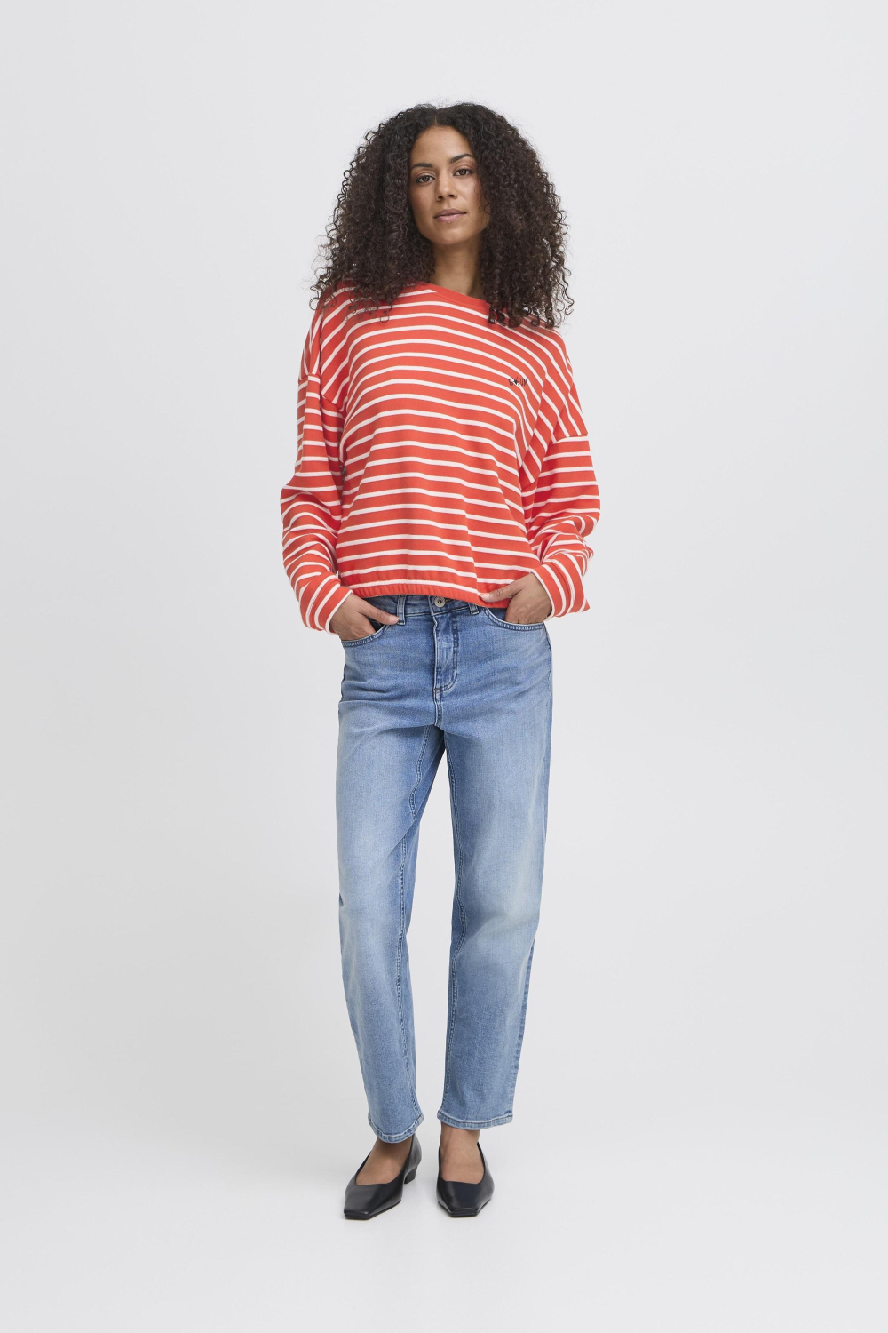 Deze casual sweater van Ichi is een kleurrijke toevoeging aan je herfstcollectie. De levendige FIERY RED STRIPE maakt de trui speels en opvallend, perfect voor een ontspannen dag uit. De sweater is gemaakt van 70% katoen en 30% polyester, wat zorgt voor een comfortabele en zachte touch. De regular fit en de normale lengte maken hem ideaal voor dagelijks gebruik, of je nu naar het werk gaat of een ontspannen weekend hebt gepland. Met zijn ronde hals en lange mouwen biedt de Ichi sweater een knusse fit die je warm houdt tijdens de koelere dagen. Het gestreepte patroon geeft een moderne uitstraling, terwijl de sweatstof zorgt voor een casual maar stijlvolle look. Combineer hem met je favoriete jeans voor een moeiteloze outfit, of draag hem met een rok voor een meer geklede stijl. Deze sweater is een veelzijdige keuze die je makkelijk kunt mixen en matchen in verschillende gelegenheden.