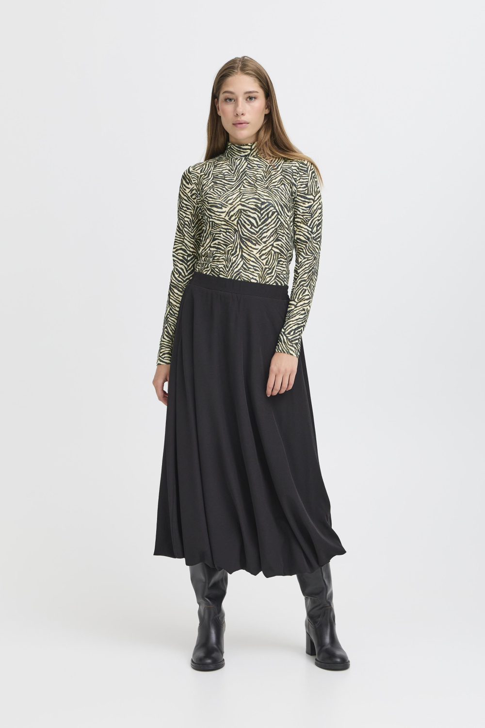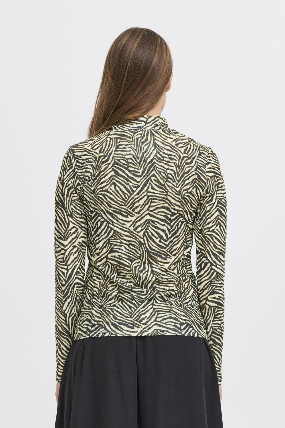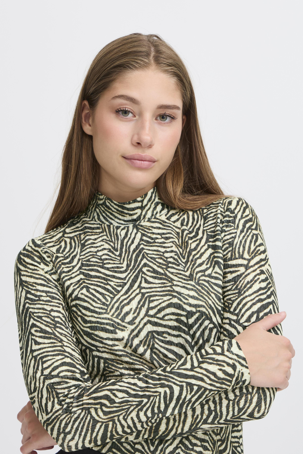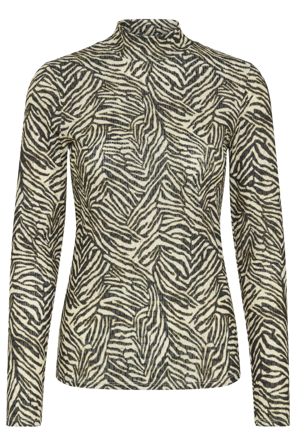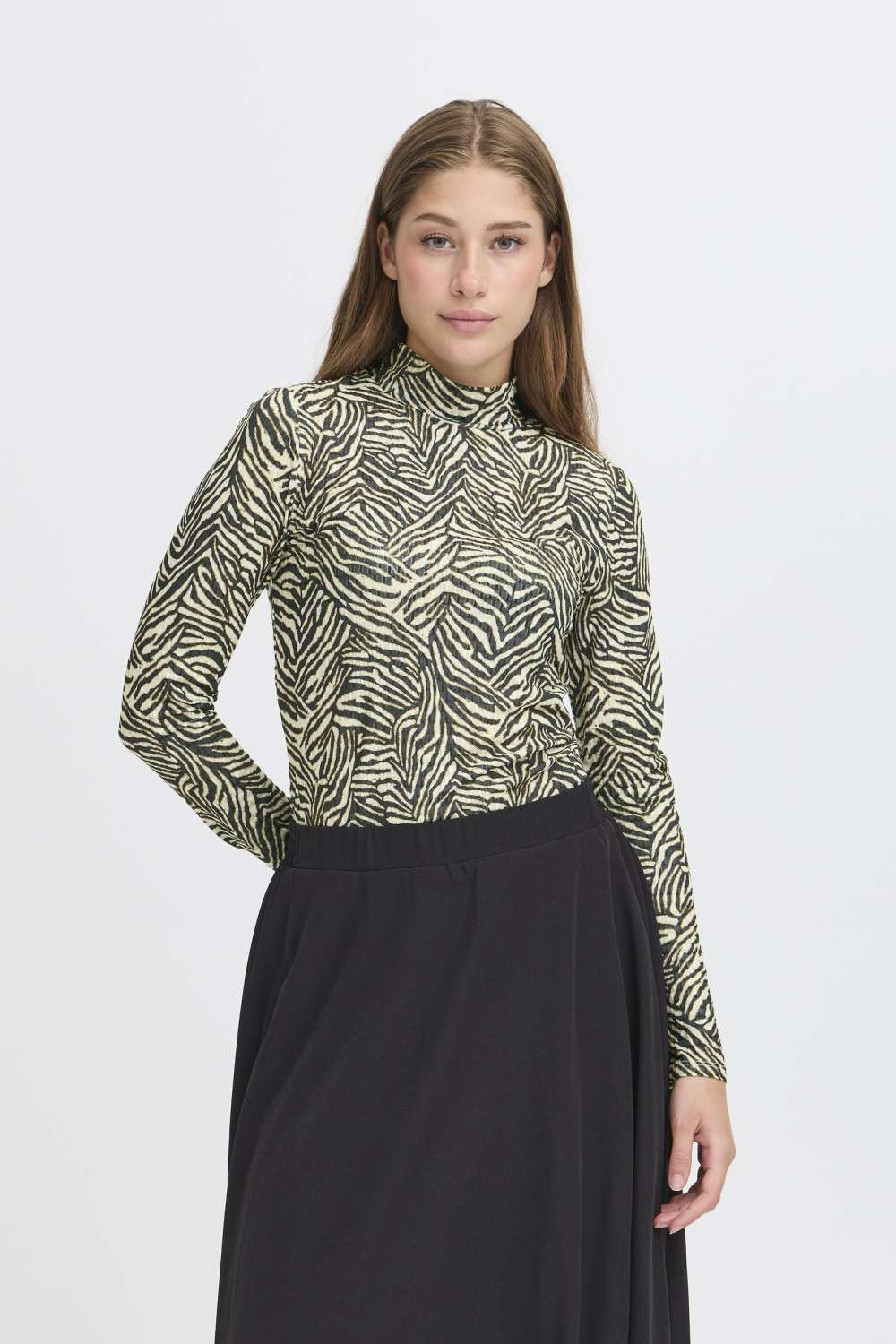 Ontmoet het stijlvolle dames T-shirt van Ichi, een veelzijdige keuze voor jouw herfstgarderobe. Dit T-shirt heeft een opvallend animal print patroon dat je outfit direct ophaalt. De high neck en lange mouwen geven een elegante en modieuze uitstraling, terwijl de slim fit pasvorm zorgt voor een flatterende look. Gemaakt van 95% polyester en 5% elastan, biedt het een comfortabele stretch en voelt het de hele dag aangenaam aan op je huid. Dit Ichi T-shirt is een veelzijdige toevoeging aan je kledingcollectie. Draag het casual met een jeans voor een dagje uit, of combineer het met een nette rok voor een meer verfijnde look. Dankzij de normale lengte en het unieke ontwerp is het een perfecte match voor zowel dagelijkse bezigheden als speciale gelegenheden. Voor de moderne vrouw die houdt van een mix van stijl en comfort, biedt dit T-shirt een perfecte balans.