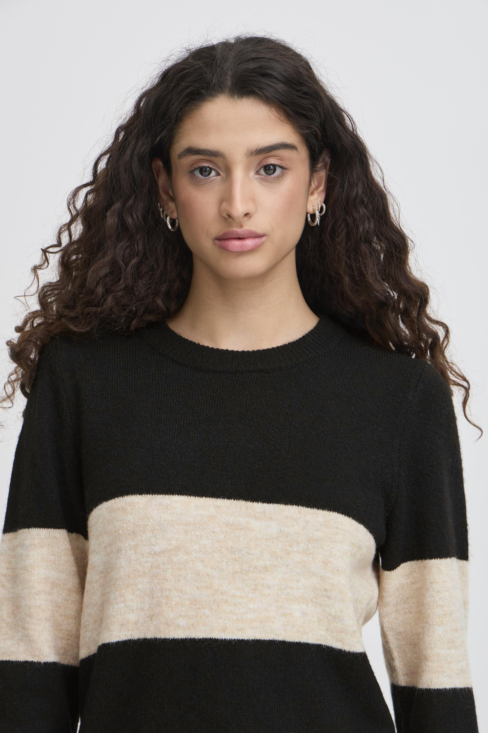De Ichi trui, met het model 900000263 METEORITE STRIPE, is een stijlvolle toevoeging aan je herfstgarderobe. Deze damestrui onderscheidt zich met zijn opvallende brede strepen in zwarte en beige tinten, perfect voor een casual look. De regular fit pasvorm zorgt voor een comfortabele en flatterende uitstraling. Gemaakt van een mix van 68% acryl, 30% polyester en 2% elastan, biedt het een zachte en warme textuur die ideaal is voor de koelere seizoenen. De ronde hals en de lange mouwen maken het tot een veelzijdig kledingstuk dat eenvoudig te combineren is.