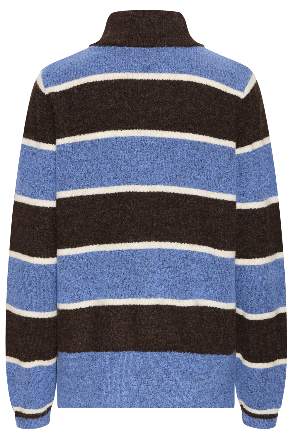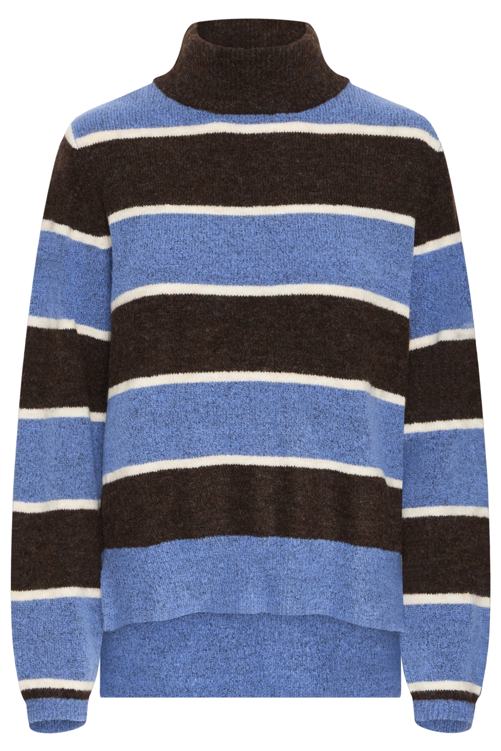 De Ichi damestrui is een ideale keuze voor het herfstseizoen. Deze regular fit trui combineert comfort met stijl dankzij de hoogwaardige mix van 68% acryl, 30% polyester en 2% elastan. De horizontale strepen in blauw en bruin geven een speels en toch tijdloos karakter aan de trui, perfect voor een casual dagje uit of een ontspannen weekend. De high neck hals zorgt voor extra warmte en geeft een moderne look aan het geheel. Met zijn lange mouwen en normale lengte is deze trui veelzijdig genoeg om te combineren met een jeans of een nette broek, waardoor hij geschikt is voor diverse gelegenheden. Of je nu een wandeling door het park maakt of een koffieafspraak hebt met vrienden, met deze Ichi trui kom je altijd stijlvol voor de dag. De zachte stof en het opvallende streeppatroon maken dit knitwear item tot een aanwinst voor je garderobe.