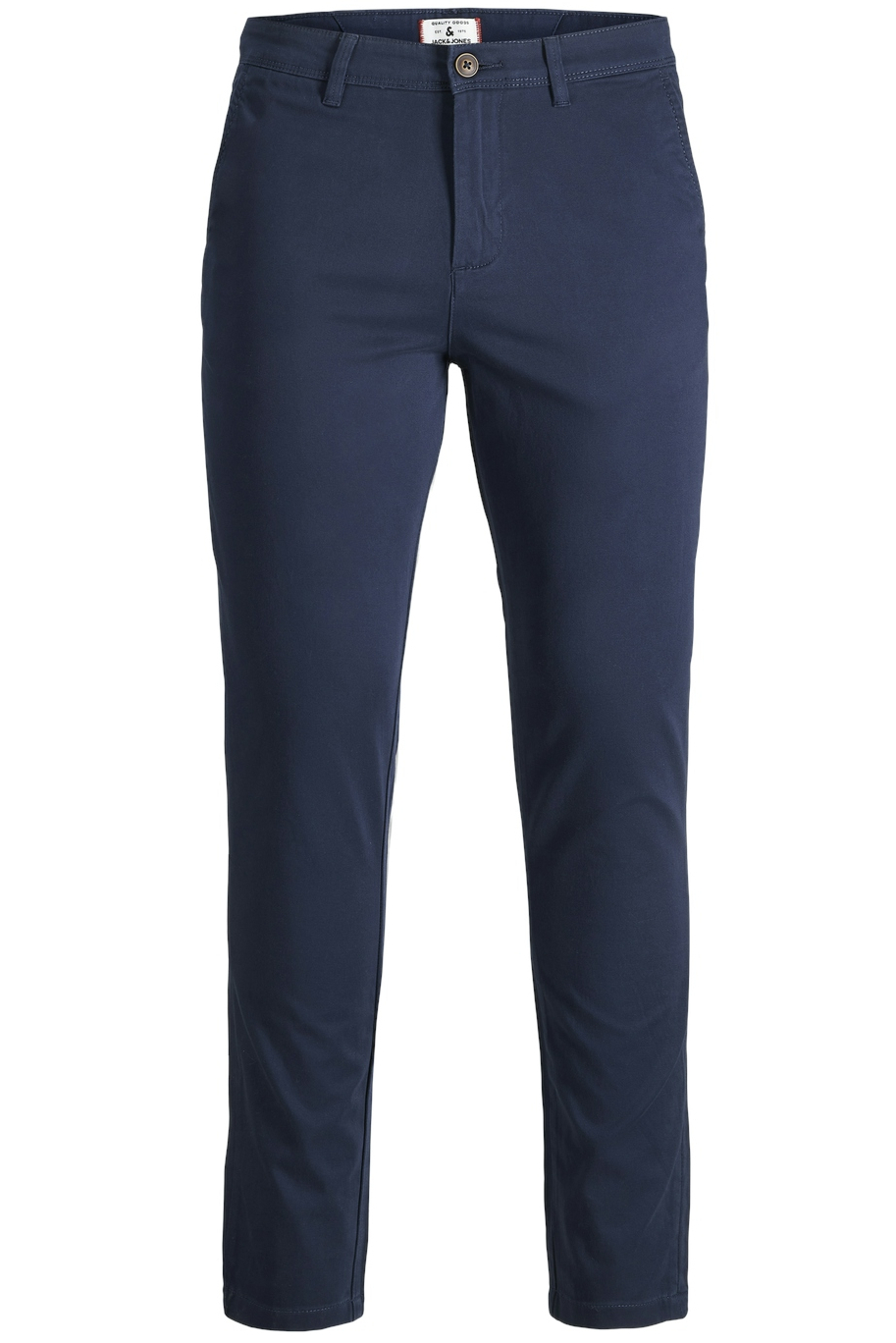 De navy blazer broek van Jack & Jones biedt een perfecte combinatie van stijl en comfort voor elke man. Gemaakt van 98% BCI katoen en 2% elastan, beschikt deze broek over een duurzame en lichte stof die makkelijk mee beweegt. Met de 5-pocketstijl en een regular waist, biedt deze broek zowel functionaliteit als een moderne uitstraling. De knoop- en ritssluiting maken het geheel af, perfect voor casual en wat formelere gelegenheden. De slim fit pasvorm van deze navy broek van Jack & Jones voegt een verfijnde touch toe aan je outfit. Ideaal om te dragen naar een feestje of een diner, en makkelijk te combineren met een overhemd of een casual T-shirt. De normal lange pijpen en het stijlvol afgewerkte ontwerp maken deze broek tot een tijdloze keuze in je garderobe. Of je nu een meeting hebt of met vrienden afspreekt, deze broek zorgt voor de juiste look.