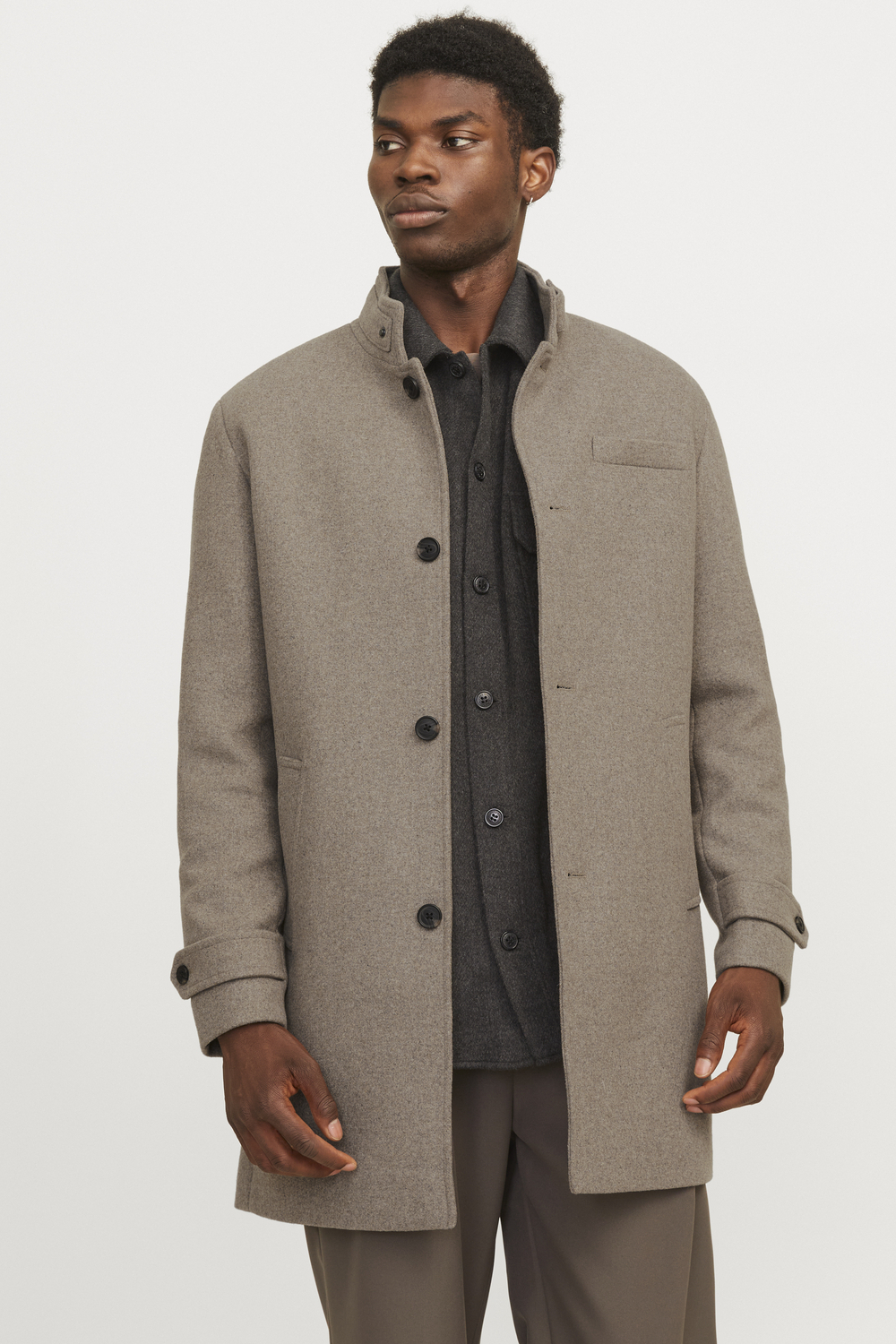 Deze halflange jas van Jack & Jones is een stijlvolle keuze voor de winter. Gemaakt van een gemêleerde stof in de kleur greige, heeft de jas een eigentijdse regular fit en biedt hij optimaal comfort. De hoge kraag en knoopsluiting zorgen voor een verfijnde uitstraling, terwijl de borstzakken een praktische touch toevoegen. Dankzij de nylon voering blijf je lekker warm, zelfs op de koudste dagen. Met zijn casual stijl is deze Jack & Jones jas ideaal voor diverse gelegenheden. Of je nu een dagje de stad ingaat of een informele afspraak hebt, deze jas past perfect bij jouw outfit. Combineer hem met een jeans en een trui voor een relaxte look, of draag hem over een net overhemd voor een meer gepolijste uitstraling. De lange mouwen en duurzame materialen maken deze jas een praktische en modieuze keuze voor elk winterseizoen. Meer informatie: De totale lengte is 89 cm bij maat M.