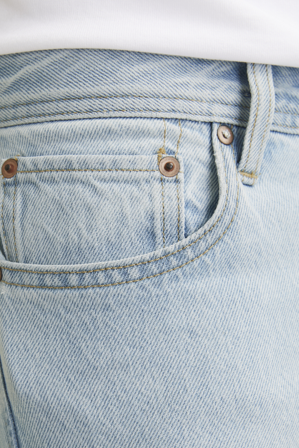 Deze Jack & Jones jeans met een relaxed fit is een ideale aanvulling op jouw dagelijkse garderobe. Met een moderne bleached wash krijgt het denim een frisse look die moeiteloos past in verschillende settings. De regular waist taille en de traditionele 5-pocket stijl maken deze jeans niet alleen veelzijdig, maar ook functioneel. Dankzij de knoopsluiting en het stevige katoen, waarvan 20% van gerecycled materiaal, kies je voor zowel stijl als duurzaamheid. De jeans valt normaal qua lengte en is perfect voor basislooks die zowel casual als trendy zijn. Draag deze blauwe denim met een eenvoudig T-shirt en sneakers voor een relaxte dag in de stad, of style het met een overhemd voor een meer verzorgde uitstraling. Of je nu uitgaat met vrienden of een informele werkdag hebt, deze Jack & Jones jeans biedt comfort zonder concessies te doen aan stijl. Een tijdloze keuze voor iedere man.