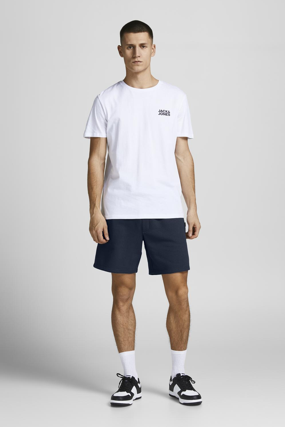 Deze navy blazer korte broek van Jack & Jones is een casual essential in je garderobe. De broek is vervaardigd uit een comfortabele blend van 61% polyester en 39% katoen, wat zorgt voor een zachte en duurzame stof. Het ontwerp heeft een regular fit en een regular waist, waardoor het een natuurlijke pasvorm biedt. De elastische boord met trekkoord garandeert extra comfort en een optimale pasvorm, geschikt voor elke dag. Met steekzakken voor je essentials, is deze korte broek zowel praktisch als stijlvol. De sweatstof maakt deze Jack & Jones korte broek perfect voor ontspannen zomerdagen of een dagje uit in de stad. De tijdloze navy kleur is eenvoudig te combineren met een casual T-shirt of een luchtige polo. Of je nu naar het strand gaat, een wandeling maakt, of gewoon thuis ontspant, deze broek biedt een informele look zonder in te boeten op stijl. De normale lengte zorgt ervoor dat je bewegingsvrijheid hebt, terwijl je altijd comfortabel blijft. Voeg deze veelzijdige korte broek toe aan je collectie voor een vleugje moeiteloze stijl.
