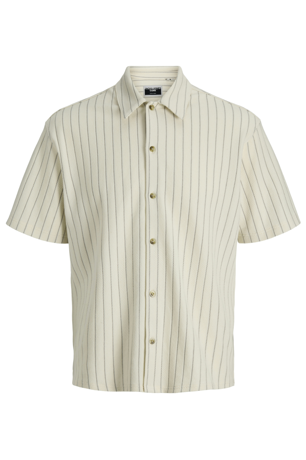 Dit casual overhemd van Jack & Jones, met de subtiele naam "Cloud Dancer/STRIPES", is een veelzijdige aanvulling op je lente-garderobe. Gemaakt van 100% katoen, biedt het een luchtige en comfortabele draagervaring. De regular fit pasvorm zorgt voor een losse en relaxte stijl, perfect voor dagelijkse gelegenheden. Met een tijdloze streepjespatroon en een klassieke puntkraag voegt dit overhemd een verfijnde touch toe aan je look, terwijl de normale lengte en korte mouwen ideaal zijn voor warmer weer. Dit Jack & Jones overhemd is makkelijk te combineren met zowel casual als iets formelere outfits. Draag het met een lichte pantalon voor een ontspannen dag op kantoor of combineer het met een spijkerbroek voor een informele bijeenkomst met vrienden. De lichte kleur en het gestreepte patroon maken het een uitstekende keuze voor een frisse en moderne uitstraling tijdens een lente-picknick of een weekendje weg. Dankzij de knoopsluiting heb je de flexibiliteit om de stijl aan te passen aan de gelegenheid, waardoor het zowel modieus als functioneel is.