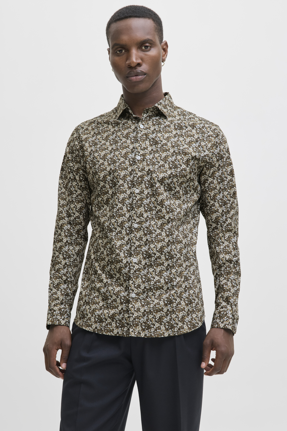 Dit casual overhemd van Jack & Jones is een stijlvolle keuze voor elke dag. Met zijn elegante bloemenpatroon in aardetinten en een regular fit, biedt het zowel comfort als een modieuze uitstraling. De puntkraag en de knoopsluiting voegen een klassieke touch toe, terwijl de samenstelling van 50% organisch katoen en 48% katoen met 2% elastaan zorgt voor een lichtgewicht en soepele stof. De lange mouwen en normale lengte maken het geschikt voor zowel informele als meer geklede gelegenheden. Dit Jack & Jones overhemd is veelzijdig te combineren met verschillende stijlen. Draag het met een nette broek voor een zakelijke look, of kies voor een casual jeans voor een avondje uit. Dankzij het tijdloze design en de zorgvuldige afwerking is het een betrouwbare keuze voor uiteenlopende gelegenheden. Met dit overhemd ben je verzekerd van een comfortabele en stijlvolle uitstraling die het hele jaar door passend is.