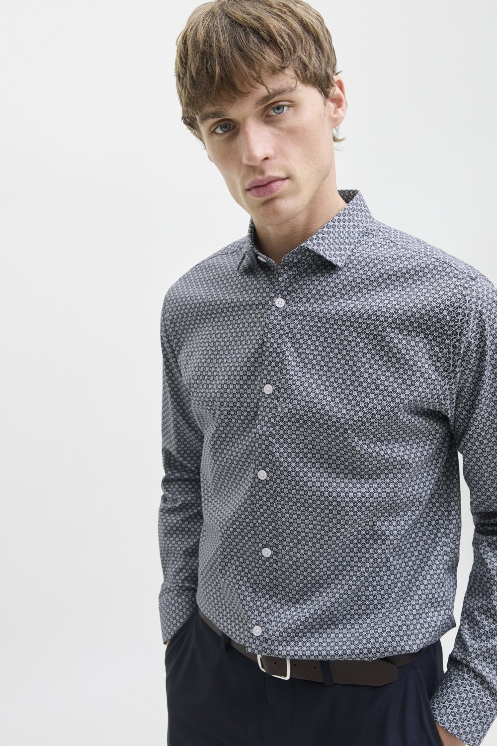 Het Jack & Jones navy blazer overhemd combineert comfort met stijl en tilt jouw garderobe naar een hoger niveau. Dit regular fit overhemd, vervaardigd van 50% organisch katoen, 48% katoen en 2% elastan, biedt een aangename draagervaring. Het grafische patroon geeft een speelse touch aan de klassieke navy kleur, ideaal voor zowel casual als nettere gelegenheden. De lange mouwen en de normale lengte maken het geschikt voor elk seizoen en elke situatie, van een dag op kantoor tot een gezellige avond met vrienden. De puntkraag en verfijnde knoopsluiting versterken de tijdloze uitstraling van dit Jack & Jones overhemd. Door het veelzijdige ontwerp kun je het makkelijk combineren met een nette pantalon voor formele afspraken, of draag het met een casual jeans voor een relaxte look. Het duurzame materiaal zorgt niet alleen voor een fijne pasvorm maar ook voor een verantwoorde keuze. Voeg dit veelzijdige kledingstuk aan je collectie toe en je bent altijd voorbereid op de dag die voor je ligt.