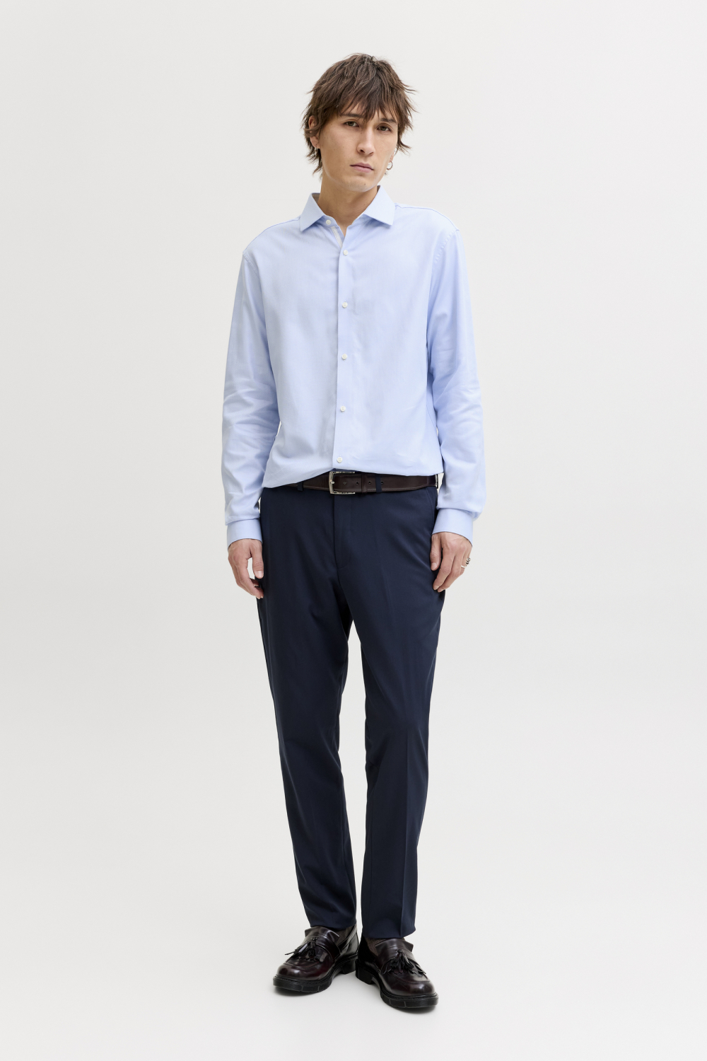 Dit gemêleerde overhemd van Jack & Jones in de kleur Faded Denim is een ideale aanvulling voor je dagelijkse garderobe. Het overhemd is vervaardigd van 100% biologisch katoen, wat zorgt voor een duurzame en comfortabele draagervaring. De slim fit pasvorm en de klassieke puntkraag geven het kledingstuk een moderne uitstraling die zowel geschikt is voor casual als semi-formele gelegenheden. Deze stijlvolle keuze wordt verder verfijnd door de subtiele knoopsluiting die het geheel een nette afwerking biedt. Dankzij het tijdloze design van dit Jack & Jones overhemd, creëer je eenvoudig verschillende looks. Het gemêleerde patroon draagt bij aan een speels effect, waardoor je het shirt perfect kunt combineren met een nette pantalon voor een zakelijke afspraak of een jeans voor een ontspannen avondje uit. De lange mouwen en de normale lengte bieden extra comfort en veelzijdigheid. Of je nu een werkdag op kantoor hebt of een informele bijeenkomst, dit overhemd past zich moeiteloos aan jouw stijl aan.