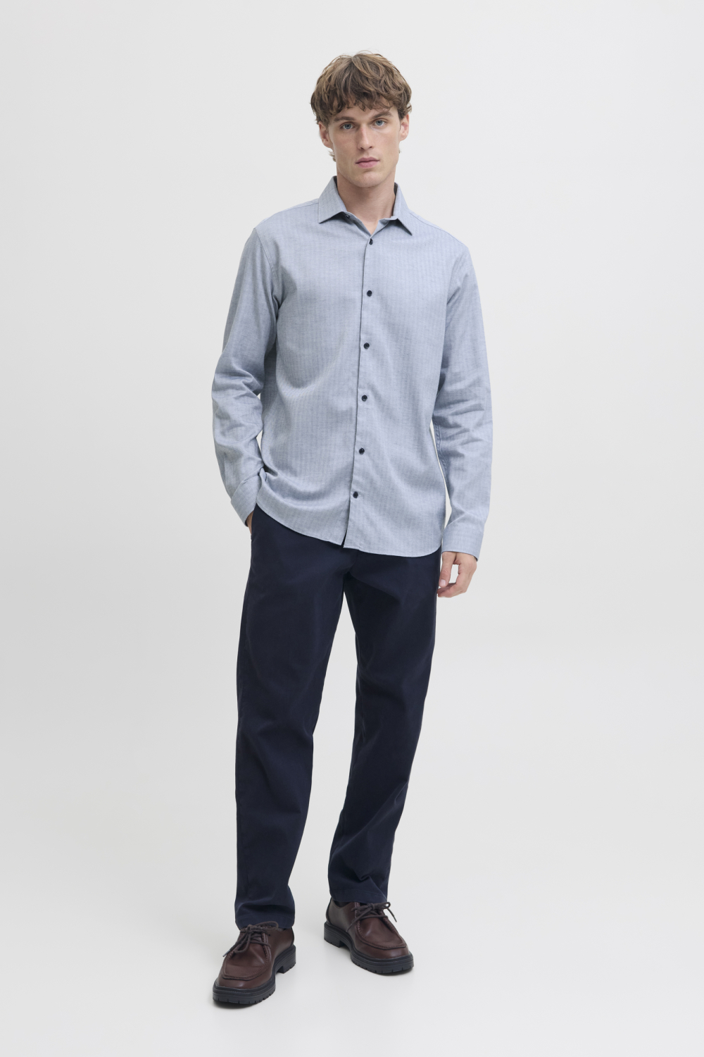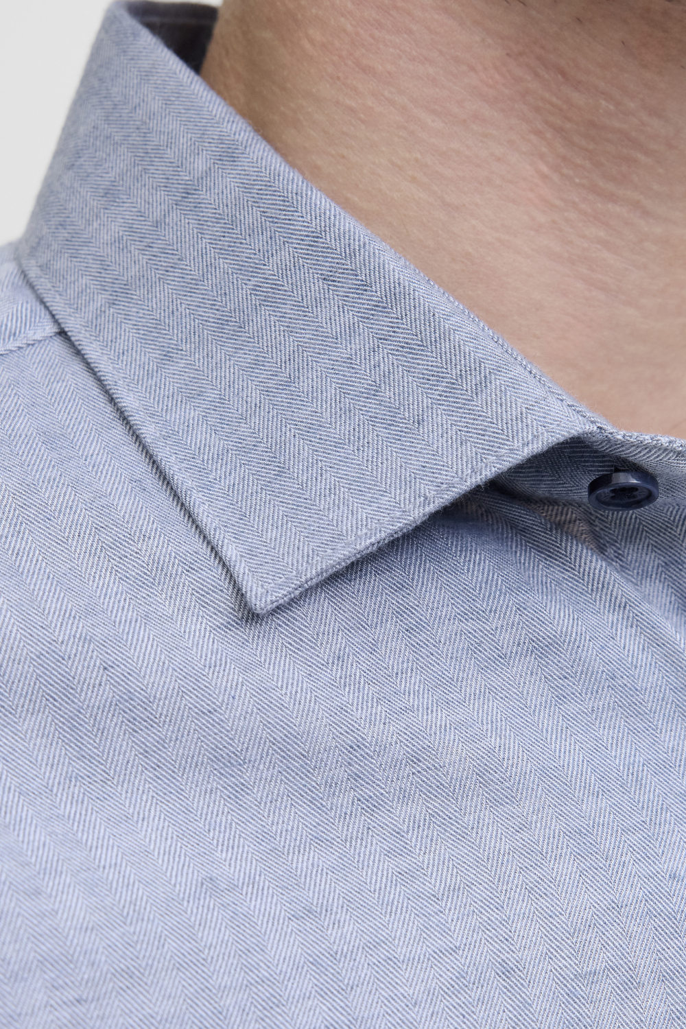 Met dit navy blazer overhemd van Jack & Jones voeg je een veelzijdig en stijlvol item toe aan je garderobe. Het overhemd is vervaardigd uit 100% katoen, wat zorgt voor een comfortabele en zachte textuur. Dankzij de regular fit pasvorm biedt het zowel bewegingsvrijheid als een nette uitstraling. Het fijne visgraatpatroon geeft het overhemd een subtiele, maar verfijnde touch, ideaal voor zowel zakelijke als informele gelegenheden. De klassieke puntkraag en de strakke knoopsluiting maken het ontwerp compleet en zorgen voor een tijdloze look. Dit Jack & Jones overhemd past perfect bij verschillende kledingstijlen en kan gemakkelijk worden gecombineerd met een nette broek voor een formele setting of met een jeans voor een meer casual uitstraling. Door de lange mouwen en normale lengte is het een praktische keuze voor elk seizoen. Of je nu een zakelijke bijeenkomst hebt of een avondje uit gaat, dit overhemd biedt de perfecte balans tussen comfort en stijl. Met de navy blazer kleur voeg je een klassieke tint toe aan je outfit, die altijd in de mode blijft.