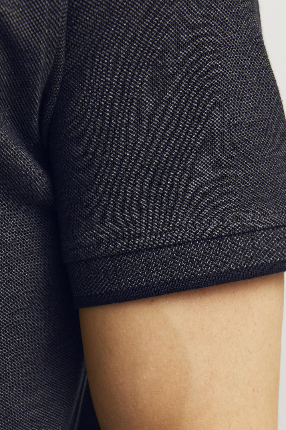 Allover gemeleerde polo van Jack & Jones. Dit model heeft korte mouwen en een ribgebreide kraag. De polo sluit met enkele knoopjes.