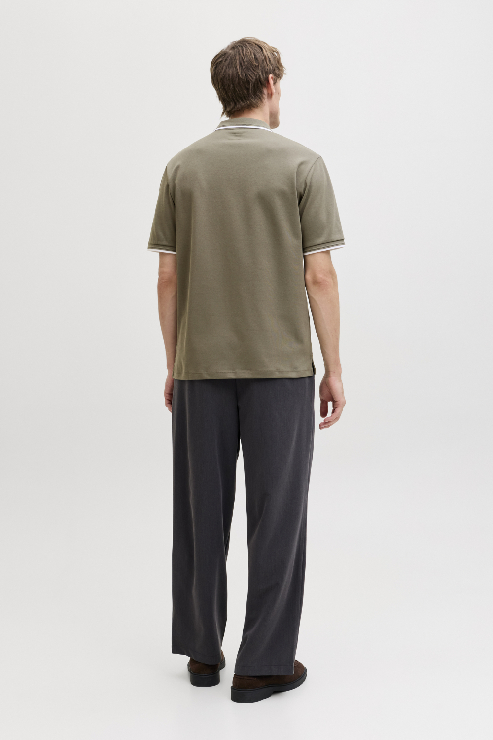 De Jack & Jones polo in een subtiele groen tint is de perfecte aanvulling voor je casual voorjaarsgarderobe. Met een regular fit pasvorm biedt deze polo comfort zonder in te boeten op stijl. De rib kraag en de knoopsluiting geven een klassieke uitstraling die gemakkelijk te combineren is met verschillende looks. De korte mouwen en de normale lengte zorgen ervoor dat je je vrij en ontspannen kunt bewegen, ideaal voor elke casual gelegenheid. Deze polo is perfect voor een dagje uit of een informele bijeenkomst, waar je een relaxte maar verzorgde look wenst. De subtiele witte details bij de kraag en mouwboorden voegen een verfijnde touch toe. Omdat de polo is opgebouwd uit duurzame materialen, draagt je ook nog eens bij aan een betere toekomst. Combineer deze veelzijdige polo met een lichte chino of een donkere jeans voor een tijdloze look die altijd in stijl is.