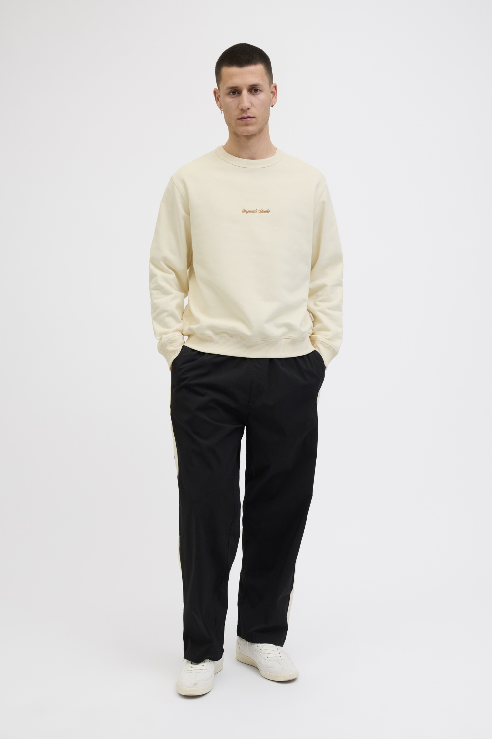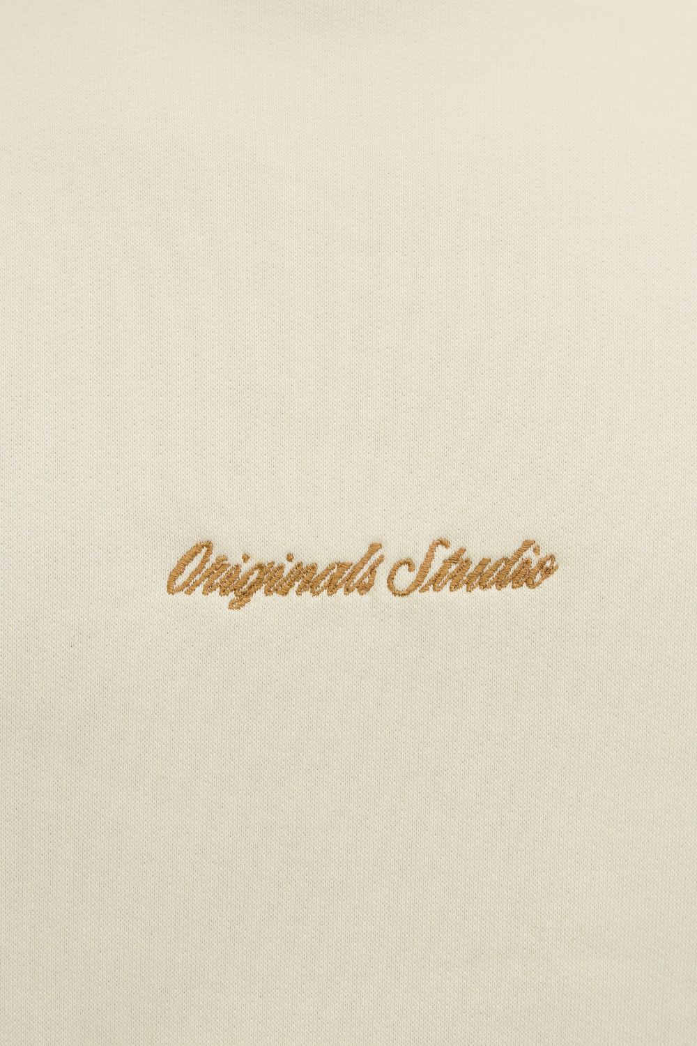 Deze stijlvolle sweater van Jack & Jones combineert comfort met een strakke uitstraling. Gemaakt van een hoogwaardige mix van 89% katoen en 11% polyester, biedt het een zacht gevoel op de huid en duurzaamheid voor dagelijks gebruik. De sweater heeft een regular fit, waardoor hij ontspannen om je lichaam valt. Met zijn ronde hals en subtiele "Originals Studio" borduursel op de borst, heeft deze trui een nette uitstraling zonder teveel op te vallen. De Antique White kleur maakt deze sweater een veelzijdig stuk in je garderobe. Perfect voor casual gelegenheden zoals een ontspannen dagje uit of een rustige avond thuis. Combineer hem met een jeans of een nette broek voor een moeiteloze look. Dankzij de lange mouwen en de normale lengte houdt deze sweater je warm, terwijl hij een tijdloze stijl toevoegt aan elke outfit. Het gebruik van duurzame materialen onderstreept de kwaliteit die je van Jack & Jones mag verwachten.