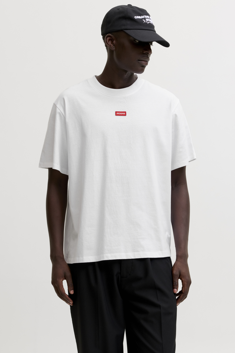 Dit grafische T-shirt van Jack & Jones in 'bright white' is een onderscheidende keuze voor elke zomerse dag. De regular fit en korte mouwen maken het een comfortabele optie voor casual settings, terwijl de opvallende rode logo-patch op de borst voor een eigentijdse touch zorgt. Gemaakt van 100% katoen, voelt het T-shirt zacht aan op de huid en biedt het ademend comfort, ideaal voor warmere temperaturen of een relaxte dag. Met de ronde hals en normale lengte is dit shirt perfect te combineren met een jeans of een casual broek voor een nonchalante look. Of je nu naar het park gaat, een festival bezoekt of gewoon een dagje uit in de stad plant, dit T-shirt past zich moeiteloos aan diverse stijlen en situaties aan. Het subtiele maar stijlvolle ontwerp maakt het een veelzijdige toevoeging aan elke garderobe, terwijl de duurzame productie een bewuste keuze ondersteunt.