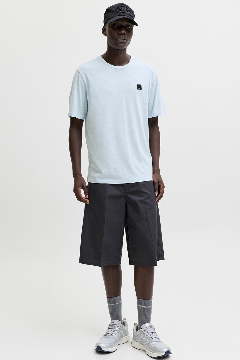 Dit casual T-shirt van Jack & Jones is een veelzijdige keuze voor de zomer. Gemaakt van een duurzame mix van 60% katoen en 40% gerecycled polyester, biedt het een comfortabele pasvorm die je de hele dag door fris houdt. Het lichtblauwe T-shirt, voorzien van een subtiele structuurpatroon, straalt eenvoud en stijl uit. De ronde hals en korte mouwen maken het tot een must voor warme dagen, en de regular fit zorgt voor een ongecompliceerde look die makkelijk te combineren is. Met zijn minimalistische design en opvallende Jack & Jones logo op de borst is dit T-shirt een perfecte aanvulling op een casual garderobe. Door de normale lengte is het ideaal om te dragen met een shorts of jeans, of onder een lichte zomerjas. Dit T-shirt is niet alleen functioneel, maar ook een stijlvolle keuze voor een ontspannend weekend of een informele bijeenkomst met vrienden. Voeg een paar sneakers toe en je bent klaar voor elke zomerse activiteit.