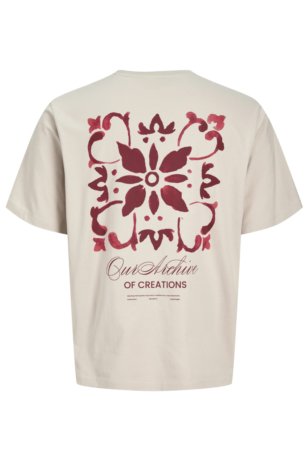 Dit casual Jack & Jones T-shirt voor heren vormt een eigentijdse toevoeging aan je zomerse garderobe. Met een comfortabele regular fit gemaakt van 100% katoen biedt het T-shirt niet alleen draagcomfort, maar ook een stijlvolle uitstraling. De ronde halslijn is klassiek en tijdloos, perfect voor een ontspannen look. Op de voorkant prijken subtiele teksten, terwijl de achterkant is voorzien van een opvallend rode bloemmotief, wat het geheel een unieke uitstraling geeft. Ideaal voor zowel informele als creatieve gelegenheden, dit T-shirt is de perfecte match voor een dagje uit of een ontspannen weekend. Combineer het met een lichte jeans en sneakers voor een moeiteloze, moderne look. Het normale model en de korte mouwen maken dit T-shirt zeer geschikt voor warmere dagen. Of je nu naar het strand gaat of een stadswandeling maakt, het Jack & Jones T-shirt biedt comfort en stijl.