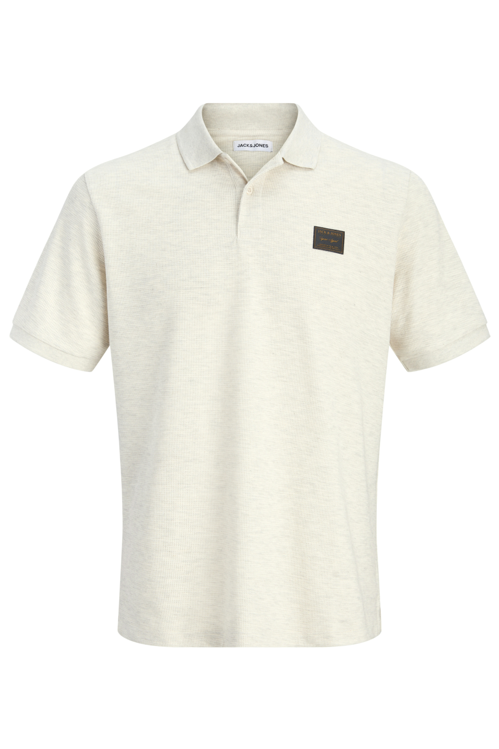 Dit casual T-shirt van Jack & Jones is een veelzijdige toevoeging aan je voorjaarsgarderobe. Met een regular fit pasvorm en korte mouwen, biedt het comfort zonder in te boeten op stijl. Gemaakt van een zachte blend van 58% polyester, 40% katoen en 2% elastan, voelt dit T-shirt licht en ademend aan. De subtiele antique white/mélange kleur geeft een frisse uitstraling, ideaal voor de lente. De herkenbare ronde hals en het verfijnde wafelpatroon zorgen voor een unieke twist. Het logo op de borst voegt een ingetogen merkdetail toe dat bijdraagt aan het totaalplaatje. Dit Jack & Jones T-shirt is uitstekend geschikt voor zowel casual als semi-formele gelegenheden. Perfect te combineren met een spijkerbroek voor een relaxte look, maar ook moeiteloos onder een blazer te dragen als je voor een iets nettere uitstraling gaat. De normale lengte maakt het makkelijk draagbaar en geschikt voor diverse lichaamsvormen. Of je nu een dagje uit hebt met vrienden of een informele bijeenkomst, dit T-shirt biedt je een comfortabele en stijlvolle keuze.