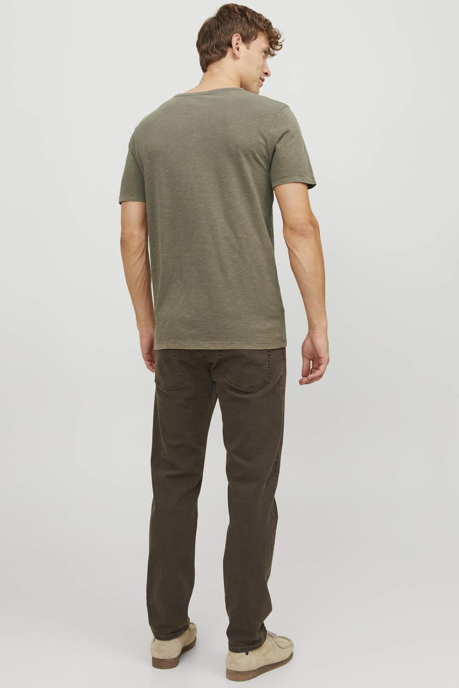 Dit gemêleerde T-shirt van Jack & Jones biedt een casual en veelzijdige uitstraling. De dusky green kleur zorgt voor een subtiele, moderne look die je gemakkelijk kunt combineren met verschillende stijlen. Het T-shirt heeft een V-hals met knoopdetails, wat net dat beetje extra geeft aan het eenvoudige ontwerp. Gemaakt van 100% katoen, levert het een zachte en comfortabele pasvorm, ideaal voor dagelijks gebruik. Dit regular fit T-shirt is perfect voor informele gelegenheden, maar kan ook prima gedragen worden in een iets nettere setting. Dankzij de korte mouwen en normale lengte is het Jack & Jones T-shirt een basisstuk dat prima werkt bij warm weer of als laag onder een vest of jasje. De gemêleerde stof geeft een speels effect, waardoor het T-shirt net wat anders is dan een standaard effen variant. Of je nu een middag in het park doorbrengt of een avondje met vrienden afspreekt, dit T-shirt is een gemakkelijke keuze die elke outfit compleet maakt.