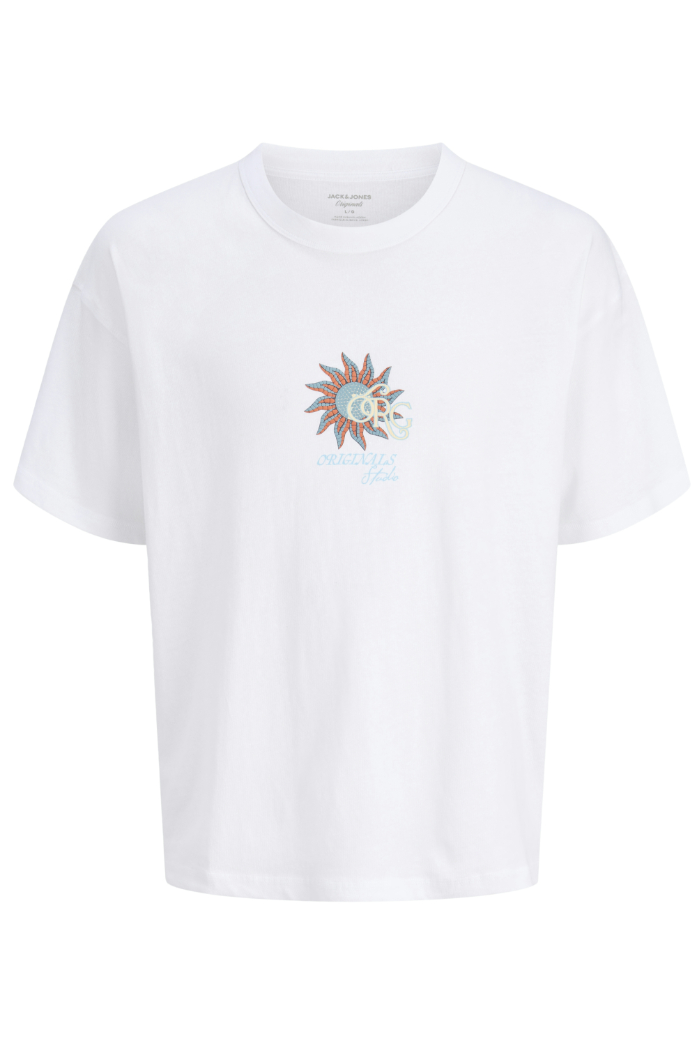 Dit casual Jack & Jones T-shirt is de perfecte aanvulling op je zomergarderobe. Gemaakt van 100% katoen, zorgt het voor een aangenaam draagcomfort, ideaal voor warme dagen. Het T-shirt heeft een ronde hals en een regular fit, waardoor het een comfortabele pasvorm biedt die bij veel lichaamsvormen goed staat. De opvallende grafische print aan de voorkant geeft een speelse touch aan het geheel, in heldere kleuren die een vrolijk accent toevoegen aan je look. Dankzij het eenvoudige ontwerp en de heldere “bright white” kleur, is dit T-shirt makkelijk te combineren met zowel een casual jeans als shorts. Het is geschikt voor diverse gelegenheden, of je nu een dagje uit plant in de zon of een ontspannen middag met vrienden. Door de korte mouwen en normale lengte blijft het T-shirt altijd comfortabel, wat je plannen ook zijn. Met Jack & Jones kies je voor een duurzaam en stijlvol item dat je keer op keer kunt dragen.