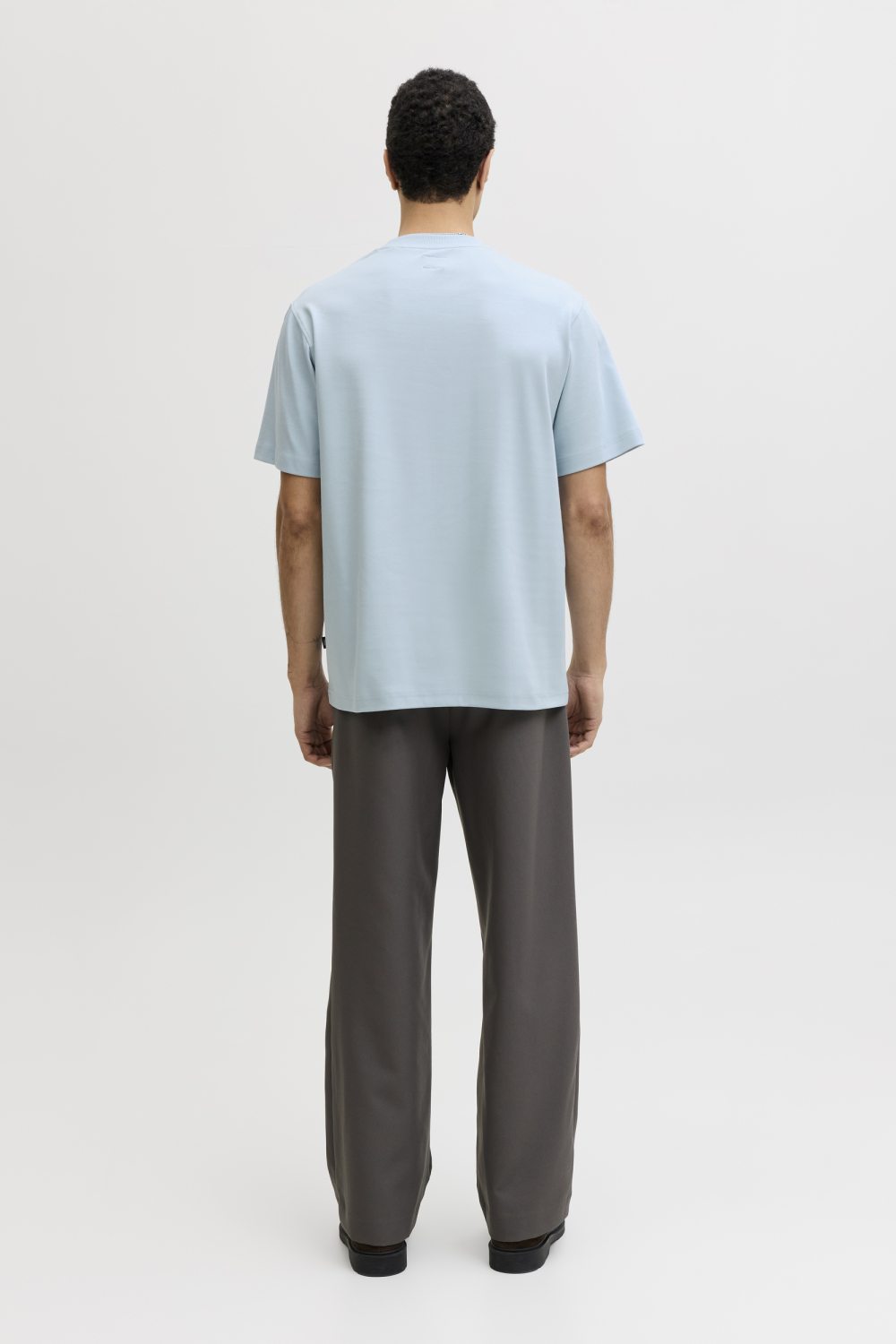 Dit casual T-shirt van Jack & Jones in chambray blue is een perfecte aanvulling op je dagelijkse garderobe. Het heeft een ronde hals en is gemaakt van 95% katoen en 5% elastan, wat zorgt voor een comfortabele en flexibele pasvorm. De regular fit biedt een relaxte uitstraling, ideaal voor informele gelegenheden. De korte mouwen en de subtiele merkdetails geven het shirt een hedendaagse look die makkelijk te combineren is met diverse outfits. Dankzij zijn tijdloze ontwerp is dit T-shirt een veelzijdige keuze voor talloze situaties. Of je nu een rustige dag thuis hebt of een ontspannen uitje met vrienden, dit shirt is een betrouwbare optie. Het normale model en de neutrale kleur laten zich eenvoudig combineren met jeans of chino's, waardoor het een onmisbare basic in jouw kledingkast wordt. Voeg dit Jack & Jones T-shirt toe aan je collectie voor een moeiteloze, stijlvolle look.