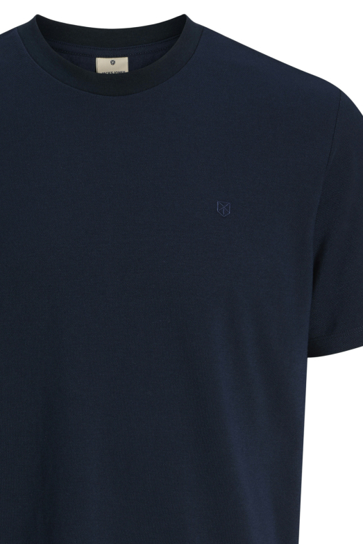 Dit casual T-shirt van Jack & Jones in dark navy is een onmisbare basic voor elke man. Met een regular fit en een ronde hals biedt het T-shirt een comfortabele pasvorm die perfect is voor de zomerse dagen. Het T-shirt is gemaakt van een duurzame mix van 50% katoen en 50% polyester, wat zorgt voor een lichte en ademende stof. De subtiele structuur in de stof geeft het een moderne twist, terwijl het minimalistische logo op de borst een verfijnde uitstraling toevoegt. Dankzij de klassieke uitstraling van dit Jack & Jones T-shirt kun je het eenvoudig combineren met diverse outfits. Het is ideaal voor een informele lunch, een dagje uit of gewoon voor een relaxte dag thuis. Draag het met een jeans voor een alledaagse look of combineer het met een korte broek voor een meer zomerse vibe. Met zijn korte mouwen en normale lengte is het T-shirt zowel praktisch als stijlvol en een veelzijdige aanvulling op je garderobe.
