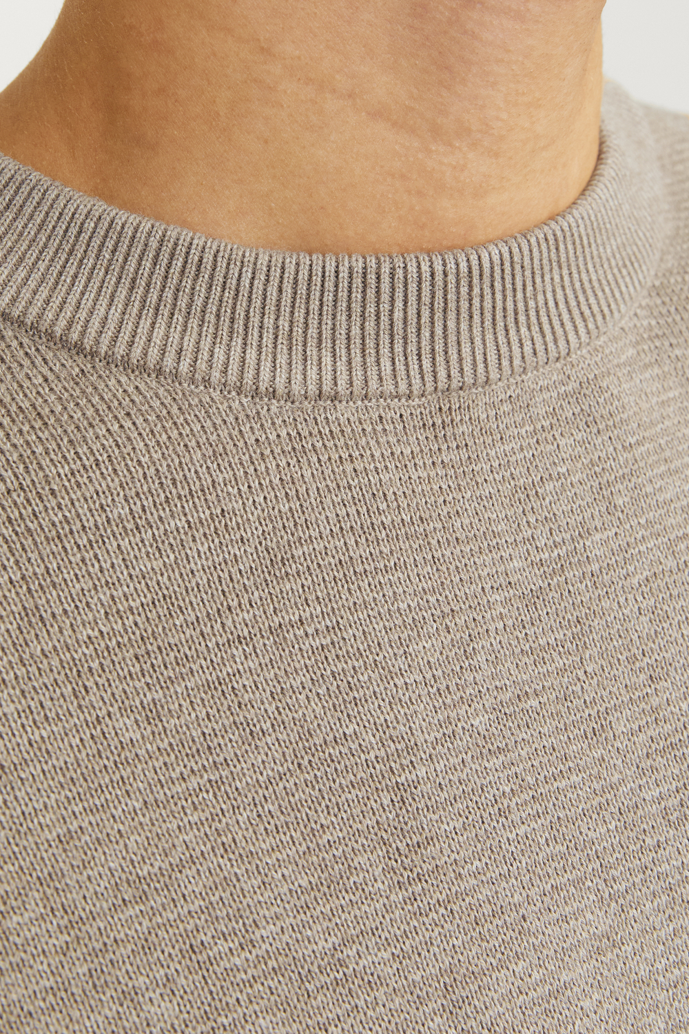 Deze gevarieerde truien van Jack & Jones zijn een stijlvolle keuze voor elke man. Gemaakt van een duurzame mix van 50% organisch katoen en 50% katoen, biedt de trui een zachte en comfortabele pasvorm. De gemêleerde greige kleur met melange effect voegt een tijdloze elegantie toe, perfect voor dagelijks gebruik of een casual bijeenkomst. De ronde hals en de lange mouwen maken het een veelzijdig stuk dat gemakkelijk te combineren is met verschillende stijlen. Met zijn regular fit biedt deze Jack & Jones trui niet alleen stijl, maar ook draagbaarheid voor diverse gelegenheden. Of je nu een dag op kantoor hebt, een informele afspraak maakt of gewoon thuis ontspant, deze trui is een betrouwbare keuze. De normale lengte zorgt voor een klassieke look, en de ademende structuur van de stof maakt het geschikt voor dagelijks comfort. Voeg deze trui toe aan je garderobe voor een eigentijdse en toch klassieke aanvulling.