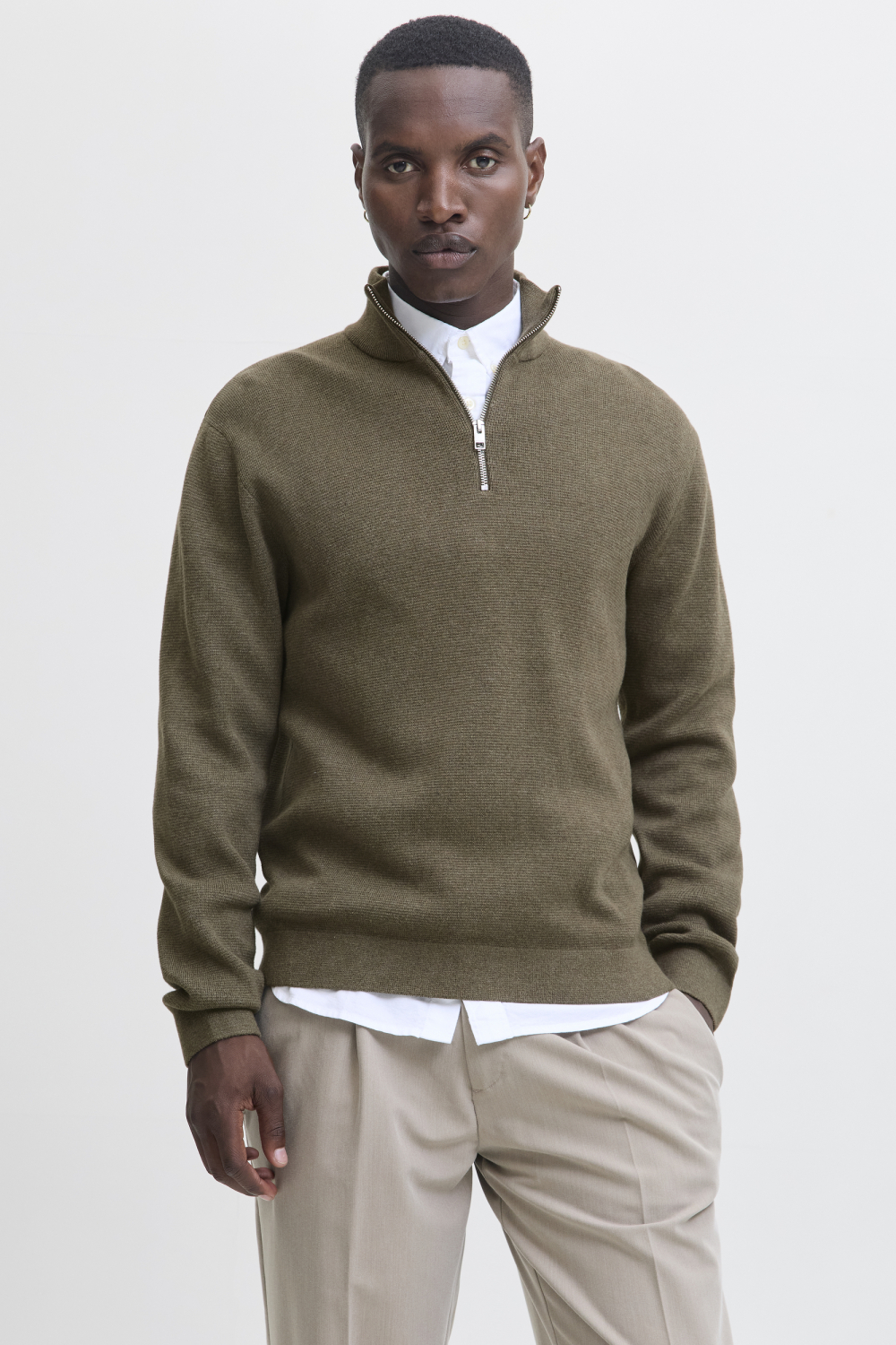 Deze gemêleerde trui van Jack & Jones biedt jou een perfecte balans tussen stijl en comfort. Gemaakt van een duurzame mix van 50% katoen en 50% biologisch katoen, is dit een bewuste keuze voor je garderobe. De regular fit zorgt voor een comfortabele pasvorm, terwijl de hoge hals met ritssluiting een moderne touch geeft aan de klassieke knitwear stijl. Dankzij de stone gray/melange kleur kun je deze trui eenvoudig combineren met zowel casual als meer geklede outfits. Met zijn lange mouwen en normale lengte is deze Jack & Jones trui ideaal voor verschillende gelegenheden. Of je nu een dag op kantoor hebt of een gezellige middag buiten plant, deze trui biedt de juiste combinatie van warmte en stijl. Het tijdloze ontwerp maakt het een veelzijdige aanwinst in elk seizoen. Combineer met een jeans voor een relaxte look, of draag het over een overhemd voor net dat beetje extra flair. Deze trui past zich moeiteloos aan jouw dagelijkse leven aan.