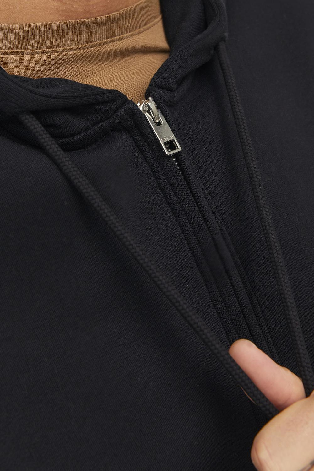 Deze zwarte Jack & Jones vest met capuchon is een onmisbare toevoeging aan je garderobe. Het vest is uitgevoerd in een regular fit, wat zorgt voor een ontspannen pasvorm. Dankzij het gebruik van 70% katoen en 30% polyester biedt het een comfortabele mix van zachtheid en duurzaamheid. Het kenmerkt zich door een rits als sluiting, waardoor het gemakkelijk aan en uit te trekken is. De stijlvolle "Originals Studio" opdruk op de borst voegt een eigentijdse touch toe, terwijl de teddylook structuur zorgt voor een warme uitstraling. Dit Jack & Jones vest is ideaal voor zowel casual als relaxte gelegenheden. Of je nu een dagje thuis ontspant of een informele afspraak buitenshuis hebt, dit vest biedt je de juiste balans tussen stijl en comfort. Met de handige steekzakken kun je eenvoudig je handen warmhouden of kleine spullen meenemen. Combineer het met een jeans of een joggingbroek voor een complete loungestijl. De lange mouwen maken het perfect voor de seizoenen waar extra warmte gewenst is. Dit veelzijdige vest past moeiteloos bij verschillende kledingstukken in je kast.