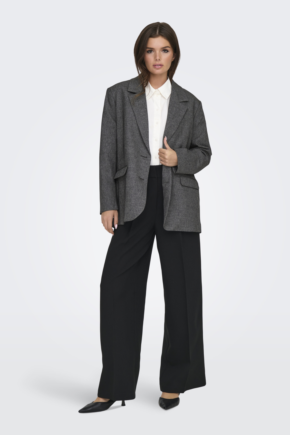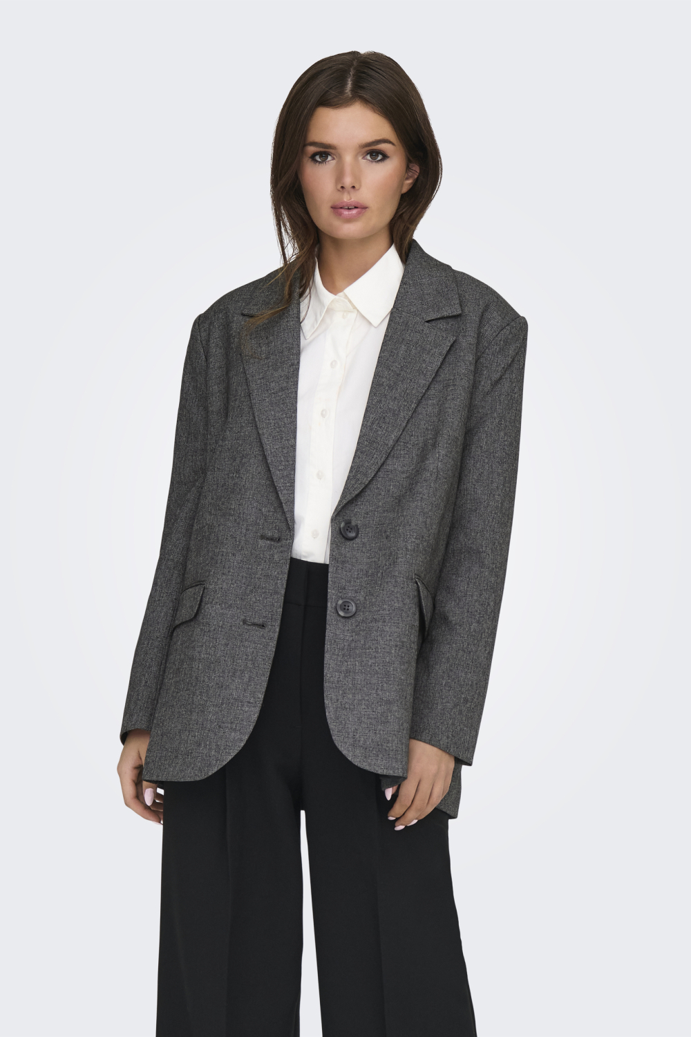 Deze gemêleerde blazer van Jacqueline de Yong biedt een modieuze mix van stijl en comfort voor dames. Het ontwerp met regular fit is vervaardigd uit een blend van 80% polyester, 17% viscose en 3% elastaan, waardoor de stof flexibel en duurzaam is. Met een klassieke reverskraag en knoopsluiting, straalt de blazer een elegante uitstraling uit. De donkergrijze kleur en het subtiele patroon maken het een veelzijdige keuze voor verschillende gelegenheden. Draag deze blazer tijdens een casual dag op kantoor of combineer hem met een nette broek voor een avondje uit. De lange mouwen en normale lengte geven dit item een tijdloze allure. Dankzij de polyester voering voelt de blazer comfortabel aan, zelfs op koudere winterdagen. Met deze Jacqueline de Yong blazer voeg je een verfijnd en veelzijdig stuk toe aan je garderobe, ideaal voor zowel formele als informele gelegenheden.