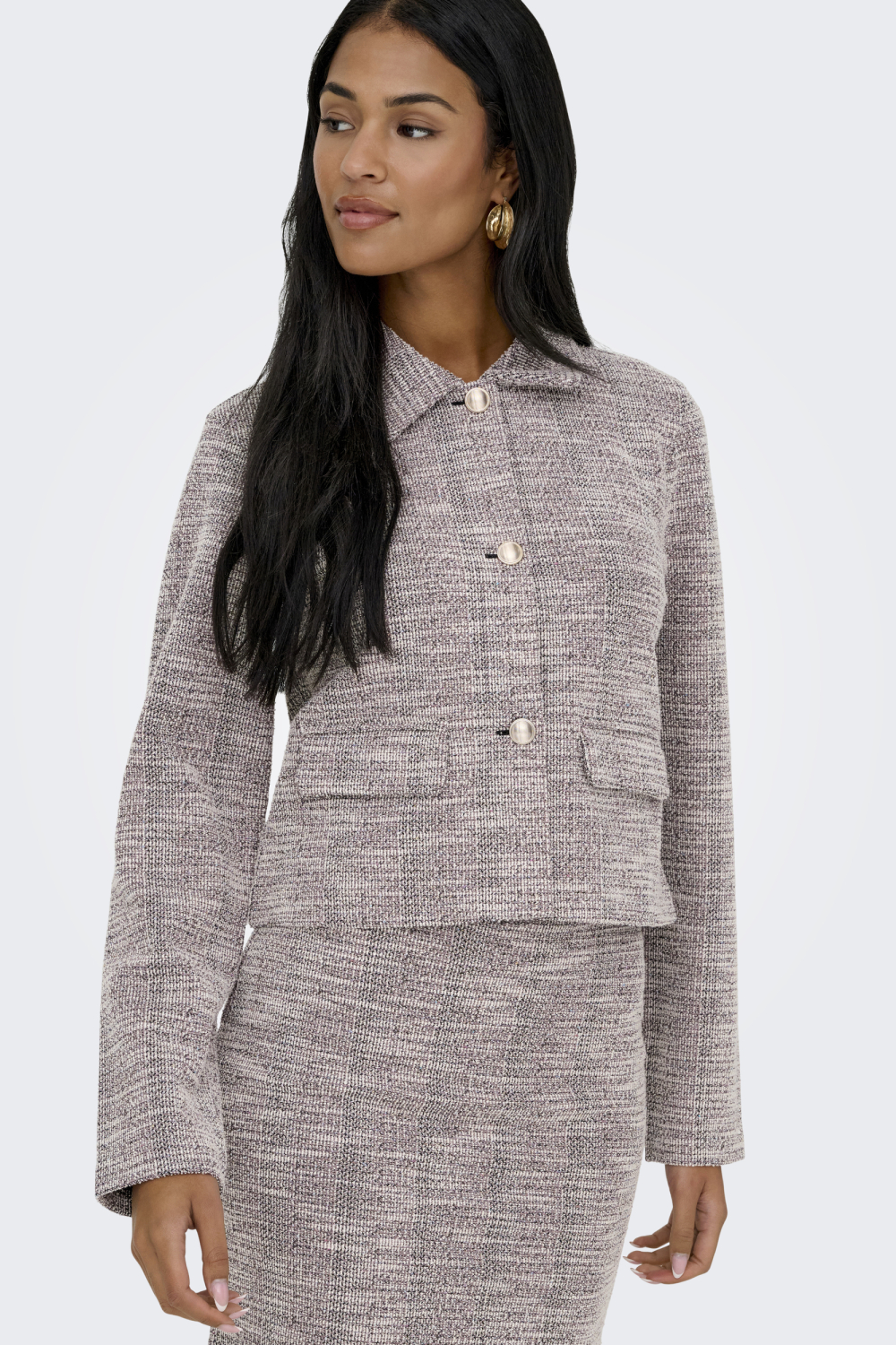 Deze casual blazer van Jacqueline de Yong is een perfecte aanvulling op je wintergarderobe. De blazer valt op door zijn gestructureerde patroon dat een subtiel en stijlvol contrast biedt. Met zijn regular fit en korte lengte, geeft het ontwerp je een moderne uitstraling zonder in te boeten op comfort. De nette puntkraag en de knoopsluiting dragen bij aan de verfijnde look van het kledingstuk. De blazer is voorzien van praktische klepzakken, ideaal voor kleine essentials. Met zijn veelzijdige ontwerp is deze blazer geschikt voor diverse gelegenheden. Combineer hem met een chique rok of een nette broek voor een avondje uit, of draag hem casual op een spijkerbroek voor een meer ontspannen look. De lange mouwen maken hem ideaal voor de wintermaanden, terwijl de stijlvolle structuur voor een tijdloze uitstraling zorgt. Of je nu naar kantoor gaat of een middagje stad plant, deze blazer is een waardevolle aanvulling op je collectie die je gemakkelijk kunt stylen.