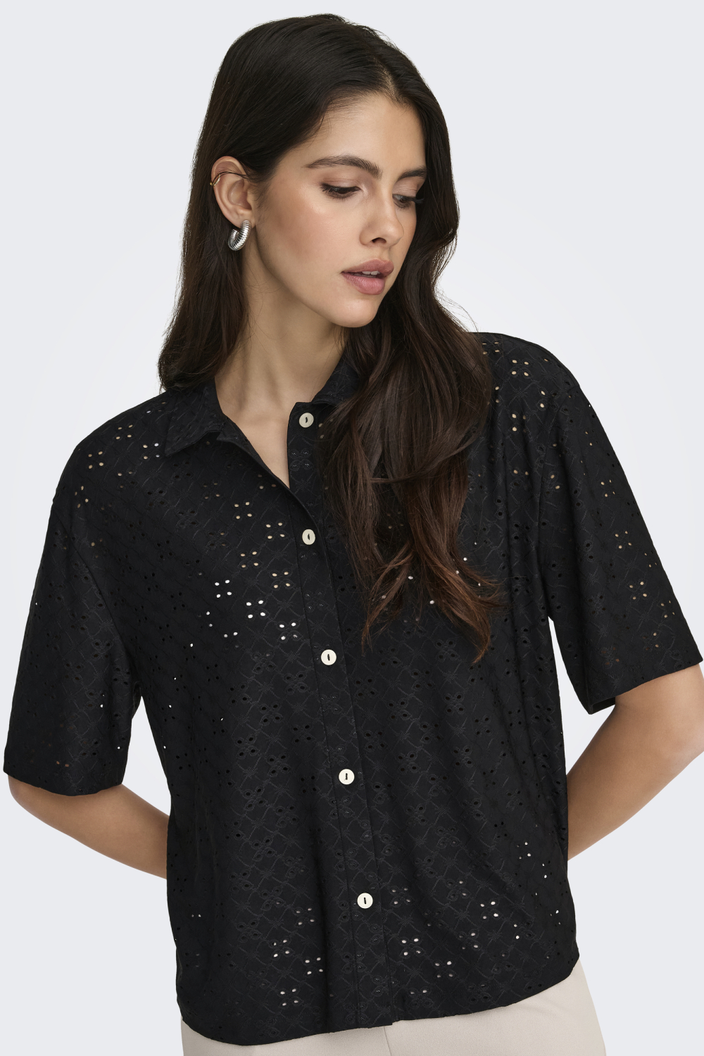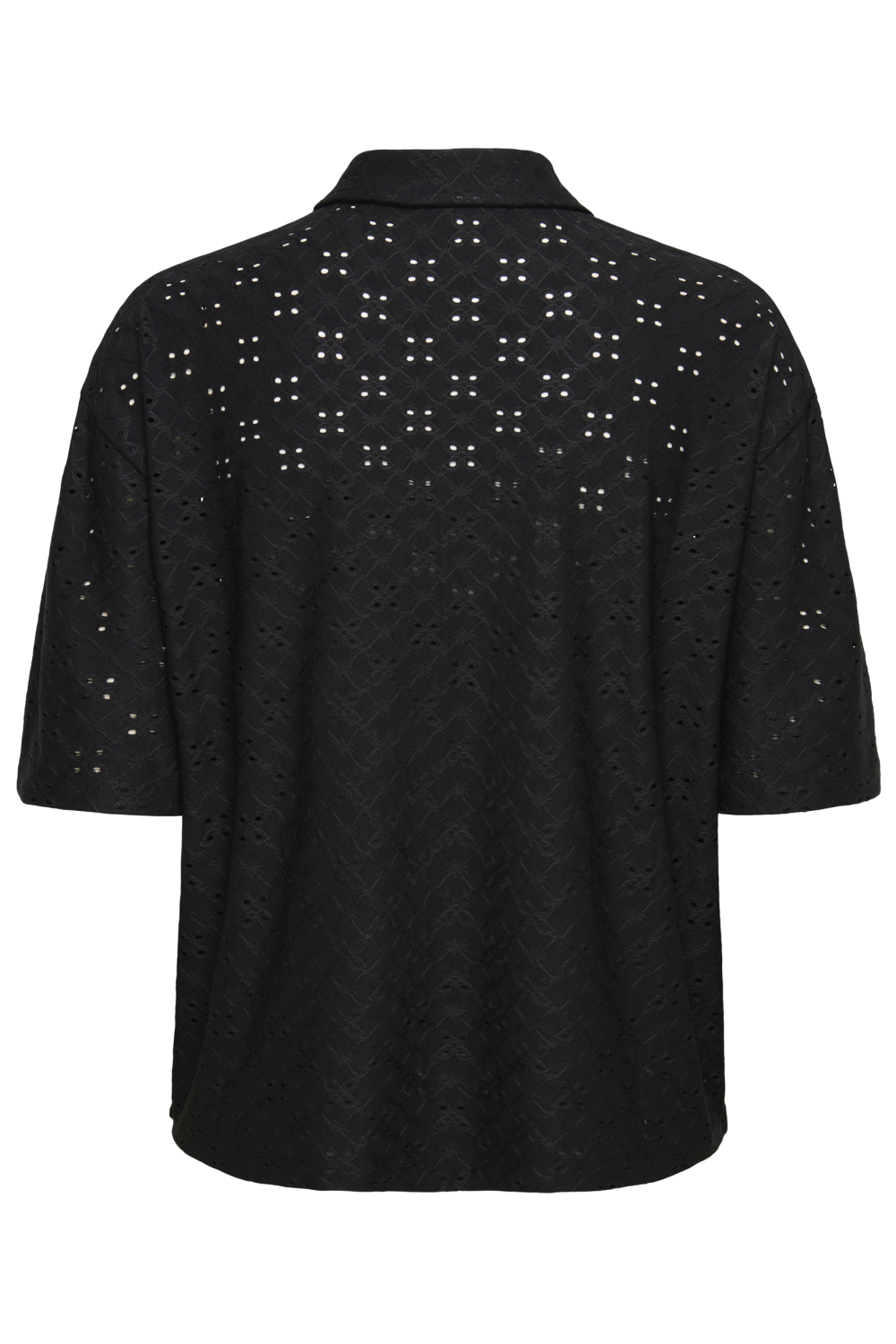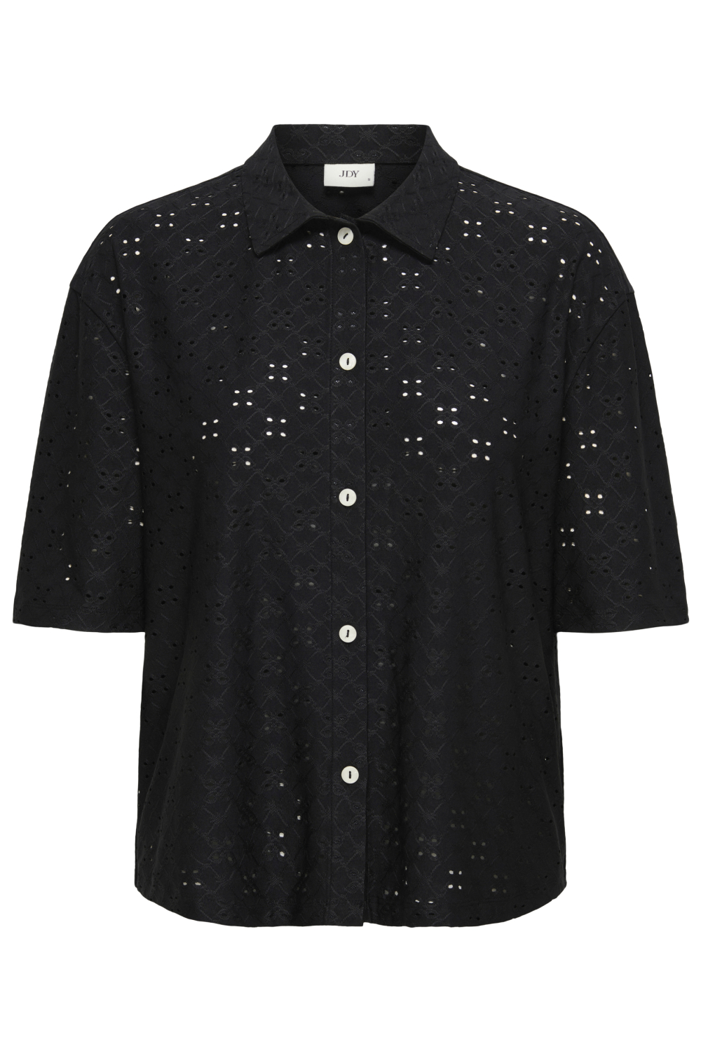 Deze elegante blouse van Jacqueline de Yong is een stijlvolle aanwinst voor je garderobe. Gemaakt met een mix van 92% polyester en 8% elastaan, biedt deze blouse flexibiliteit en draagcomfort, ideaal voor de lente. Het ajourpatroon geeft een verfijnde textuur, terwijl de klassieke puntkraag en knoopsluiting zorgen voor een tijdloze uitstraling. Het model heeft een regular fit die prettig valt en goed aansluit zonder te strak te zitten. De zwarte kleur en het bijzondere patroon maken deze blouse een veelzijdig stuk dat zowel casual als chic gedragen kan worden. Of je nu kiest voor een professionele look met een nette broek op kantoor, of juist voor een ontspannen uitstraling met een casual jeans tijdens een lunchafspraak, deze blouse past bij iedere gelegenheid. De korte mouwen en normale lengte dragen bij aan het draaggemak, waardoor je altijd comfortabel bent, ongeacht de setting. Met deze blouse combineer je moeiteloos stijl en comfort.