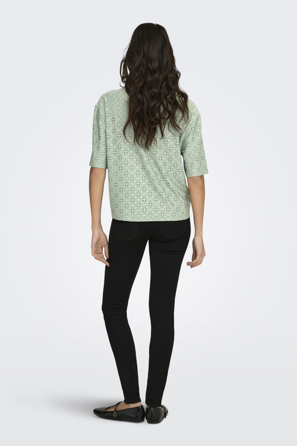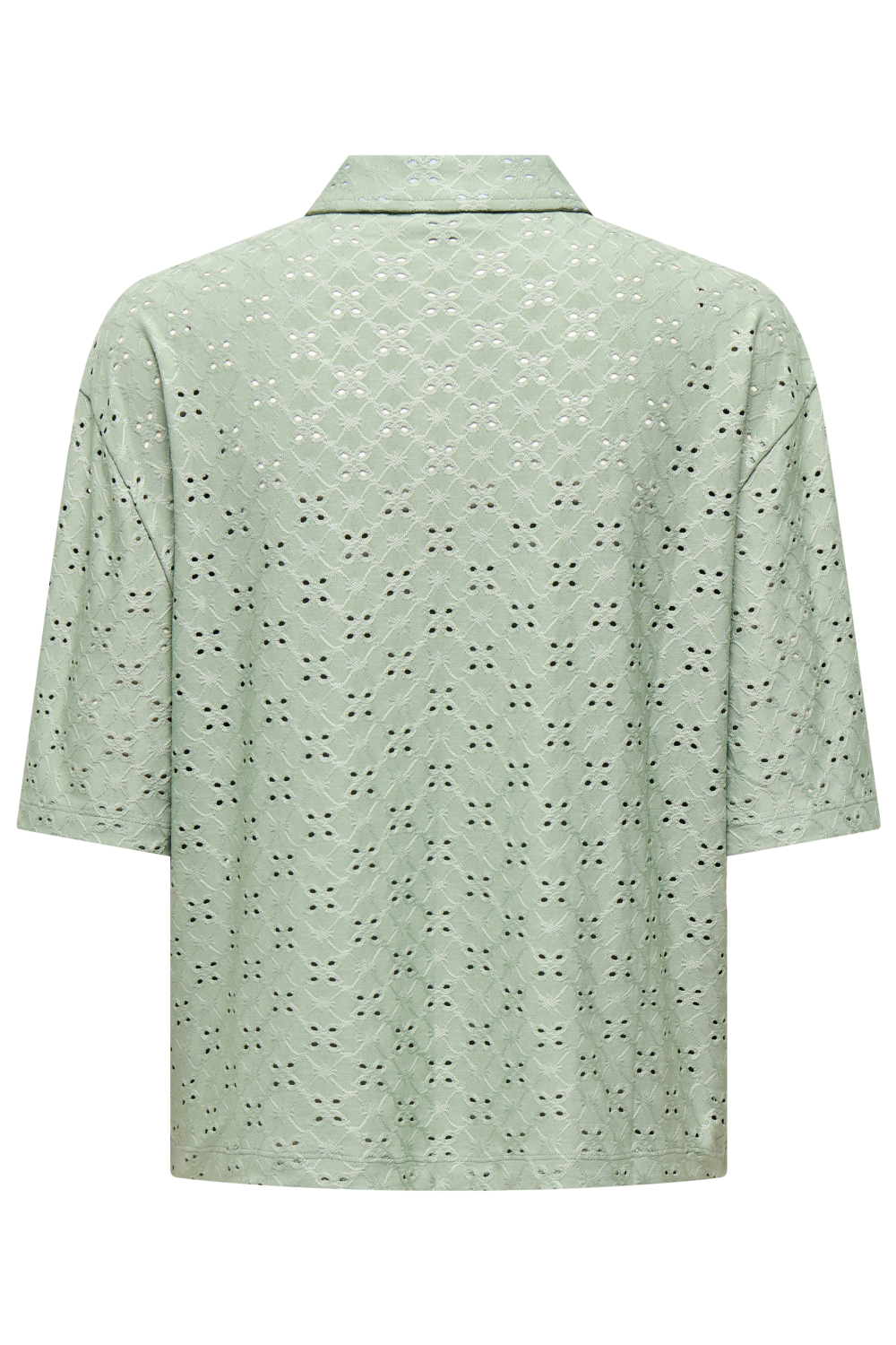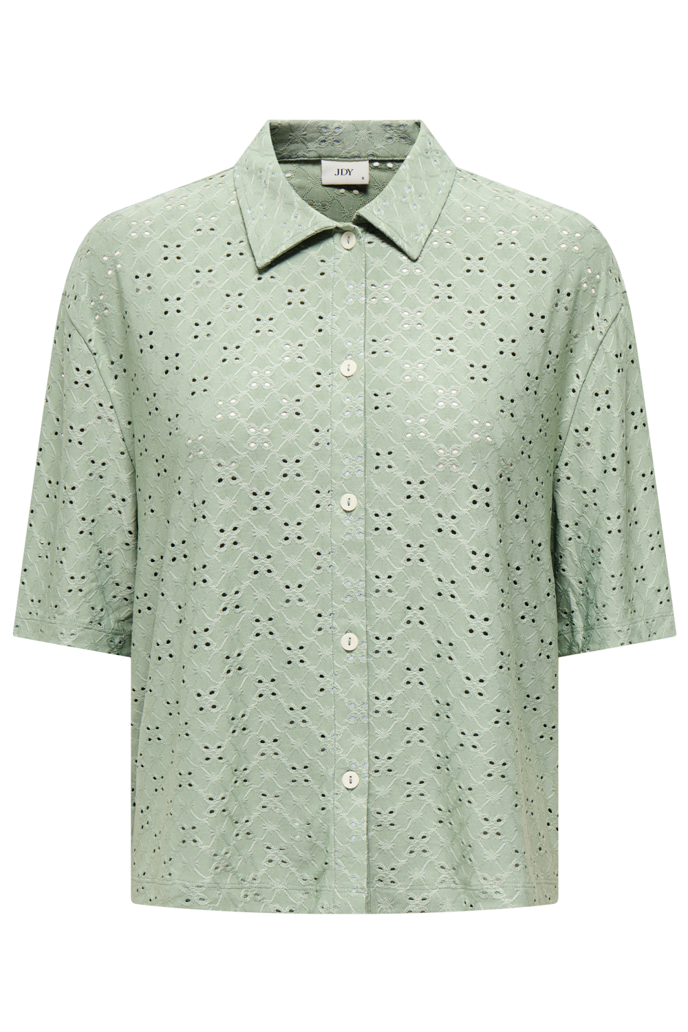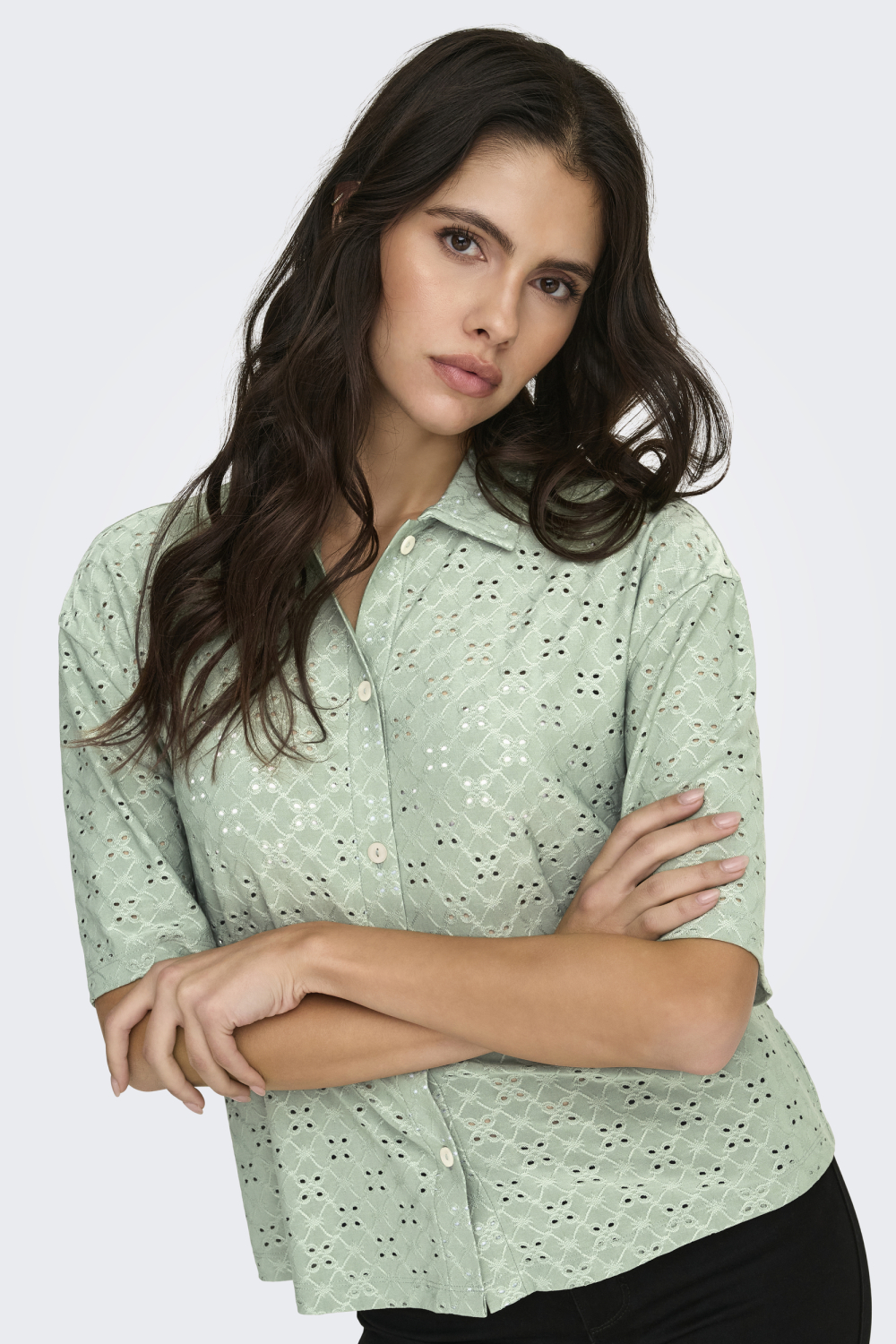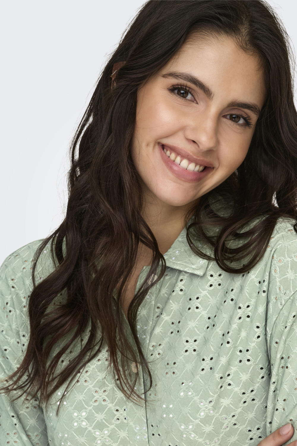 Deze verfijnde blouse van Jacqueline de Yong is een veelzijdige aanvulling op je garderobe. Het gebruik van 92% polyester en 8% elastan zorgt voor een comfortabele pasvorm met een lichte stretch. De blouse heeft een subtiel ajourpatroon, wat zorgt voor een elegante en luchtige uitstraling, perfect voor de lente. Met een klassieke puntkraag en knoopsluiting aan de voorkant straalt deze blouse tijdloze eenvoud uit. De regular fit zorgt ervoor dat je je vrij kunt bewegen zonder in te boeten op stijl. Deze blouse is ideaal voor casual settings, of je nu een wandeling maakt door het park of een lunchdate hebt. De zachte groene kleur maakt het makkelijk te combineren met verschillende stijlen en outfits. Combineer het met een lichte jeans voor een ontspannen look of draag het onder een blazer voor een iets verfijndere uitstraling. De korte mouwen maken het een comfortabele keuze tijdens warmere dagen, zonder concessies te doen aan stijl.