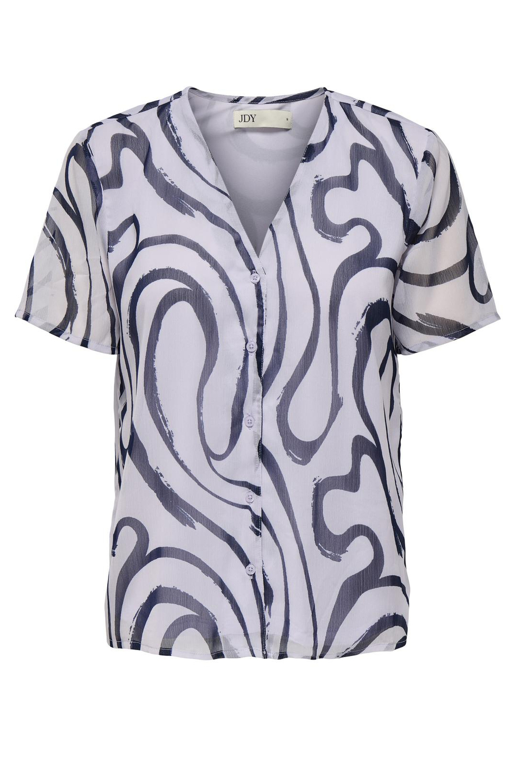 Deze casual jacquard blouse van Jacqueline de Yong is een stijlvolle toevoeging aan je voorjaarsgarderobe. Gemaakt van 51% gerecycled polyester en 49% polyester, biedt deze blouse een duurzame keuze zonder in te boeten op stijl. De blouse heeft een opvallend abstract patroon in thistle en zwarte tinten, wat een unieke uitstraling geeft. De V-hals en de korte mouwen maken het een luchtig stuk voor warmere dagen en de knoopsluiting voegt een verfijnd detail toe aan het geheel. Met zijn normale lengte en comfortabele regular fit is deze blouse geschikt voor verschillende gelegenheden. Of je nu een dagje in de stad doorbrengt of een casual werkdag hebt, deze blouse is een veelzijdige keuze. Combineer hem met een jeans voor een relaxte outfit, of draag hem met een rok voor een iets formelere look. Dankzij het stijlvolle design en de fijne textuur kun je deze blouse eenvoudig mixen en matchen met verschillende kledingstukken in je kast.