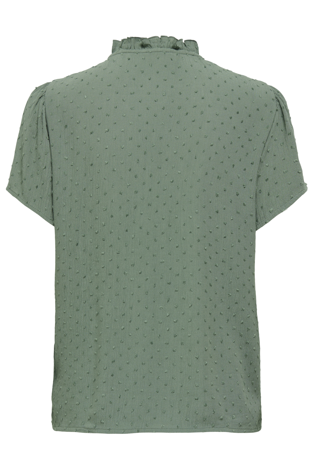 Deze casual blouse van Jacqueline de Yong is een elegante toevoeging aan je garderobe. De blouse heeft een prachtige Laurel Wreath kleur en is gemaakt van duurzame 100% Viscose Livaeco by Birla Cellulose, wat zorgt voor een aangename, lichte draagervaring. Het ontwerp valt op door de gedetailleerde structuur en de charmante ronde hals met strikkoord, die een subtiele, vrouwelijke uitstraling biedt. De korte mouwen en de regular fit pasvorm maken het een veelzijdig kledingstuk dat je comfortabel kunt dragen. Of je een dag op kantoor hebt of een casual uitje plant, deze blouse past perfect bij elke gelegenheid. Met zijn normale lengte is het gemakkelijk te combineren met zowel broeken als rokken. De subtiele structuur geeft een speelse touch aan je outfit zonder te overheersen. Dankzij de neutrale groene tint is deze blouse eenvoudig te stylen met andere kleuren en materialen. Een uitstekende keuze voor wie stijlvol en comfortabel de dag door wil.