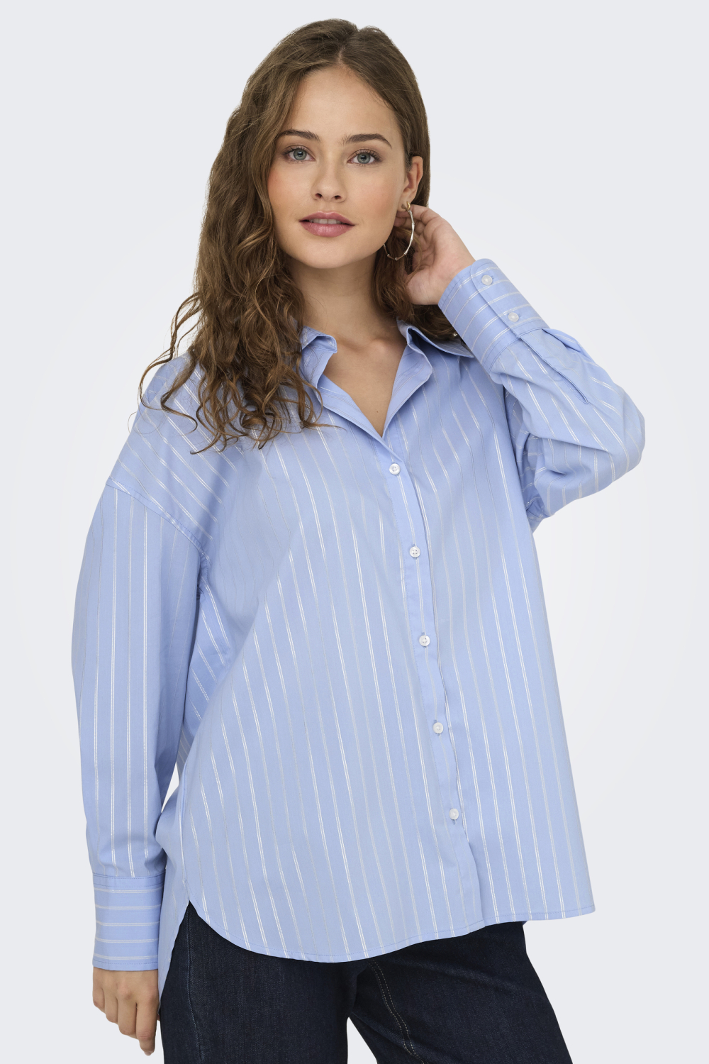 Deze casual blouse van Jacqueline de Yong is een veelzijdig item dat zeker een plek in je wintergarderobe verdient. Met een comfortabele oversized pasvorm en een charmant streeppatroon, biedt deze blouse een ontspannen en eigentijdse uitstraling. De klassieke puntkraag in combinatie met de knoopsluiting maakt het ontwerp strak en stijlvol. De luchtige blauwe tint maakt de blouse eenvoudig te combineren met verschillende kleuren en stijlen, waardoor je moeiteloos een persoonlijke touch kunt geven aan je outfit. De lange mouwen en normale lengte maken deze blouse ideaal voor dagelijks gebruik, of je nu naar kantoor gaat of een ontspannen dagje uit hebt gepland. Het streeppatroon voegt een dynamisch en modieus element toe dat zowel casual als iets meer formeel gedragen kan worden. Combineer het met een donkere jeans voor een gezellige, alledaagse look, of style het met een nette rok voor een meer gepolijste uitstraling. De veelzijdigheid en het comfort van deze blouse zorgen ervoor dat je het keer op keer wilt dragen.