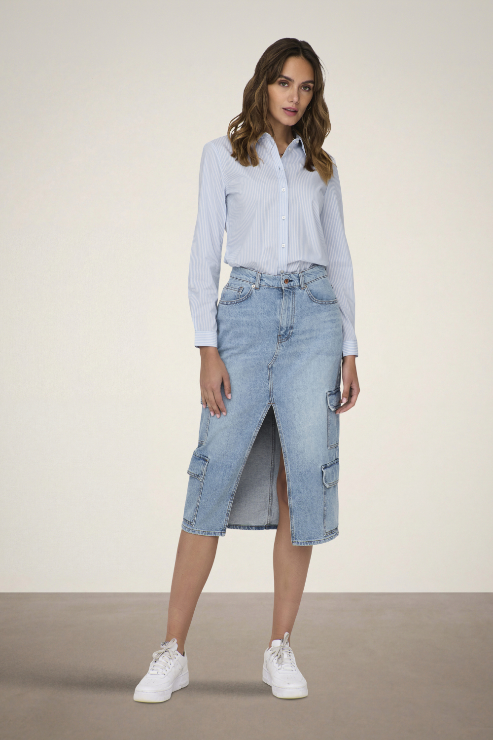 Deze elegante streepblouse van Jacqueline de Yong is een veelzijdige toevoeging aan je zomergarderobe. De blouse heeft een frisse uitstraling dankzij het subtiele streeppatroon in lichte tinten, perfect voor zowel werk als ontspannen uitstapjes. Met een samenstelling van 72% katoen, 24% polyester en 4% elastan, is het draagcomfort gegarandeerd. De regular fit biedt een ontspannen pasvorm, terwijl de puntkraag en knoopsluiting zorgen voor een nette afwerking. De lange mouwen en de normale lengte maken deze blouse geschikt voor diverse gelegenheden. Draag hem met een spijkerrok voor een casual look of combineer met een pantalon voor een meer formele setting. Dankzij de casual stijl kan deze blouse gemakkelijk van een dag op kantoor naar een avond met vrienden. De lichte materialen en luchtige snit maken het een uitstekende keuze voor warme zomerdagen. Hiermee straal je moeiteloos stijl uit in elke situatie.