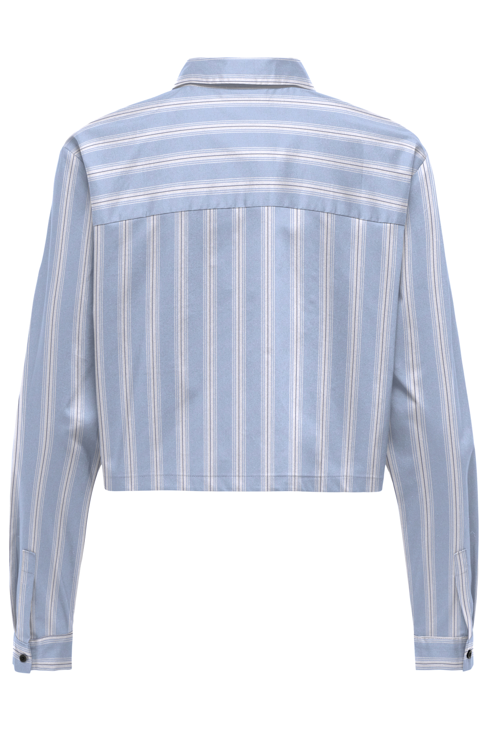 Deze blauwe blouse met streepjes van Jacqueline de Yong is een essentiële toevoeging aan jouw kledingkast. De blouse heeft een regular fit en is voorzien van een klassieke puntkraag en een knoopsluiting, wat zorgt voor een moeiteloze, casual uitstraling. De subtiele borstzakken voegen niet alleen functionaliteit toe, maar dragen ook bij aan het stijlvolle ontwerp. De stof in "Forever Blue" geeft een frisse uitstraling die perfect past bij het lenteseizoen. Dankzij de korte lengte en lange mouwen kun je deze blouse makkelijk combineren. Draag hem bijvoorbeeld op een high-waisted jeans voor een ontspannen weekendlook, of onder een blazer voor een informele werkdag. Het is een veelzijdig kledingstuk dat zich leent voor zowel dagelijkse outfits als meer gecoördineerde combinaties. Met de aandacht voor detail en de hoogwaardige afwerking biedt deze blouse comfort en stijl in één.