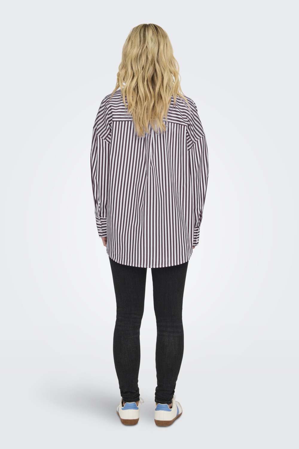 Deze casual blouse van Jacqueline de Yong onderscheidt zich door een stijlvol streeppatroon in de kleuren Cloud Dancer/FIG. Gemaakt van een comfortabele mix van 60% polyester en 40% katoen, biedt deze blouse een lichte en ademende stof die perfect is voor dagelijks gebruik. De oversized pasvorm geeft het kledingstuk een trendy en ontspannen uitstraling, ideaal voor dagen waarop je zowel stijlvol als comfortabel wilt zijn. De lange mouwen en halflange lengte maken deze blouse een veelzijdige keuze voor verschillende seizoenen. De klassieke puntkraag en knoopsluiting voegen een verfijnd detail toe, waardoor het eenvoudig is om de blouse te combineren met diverse andere kledingstukken. Draag deze blouse in een informele setting met een jeans, of geef je outfit een verfijnde twist door het te combineren met een nette pantalon. Hoe je het ook draagt, met deze blouse voel jij je altijd op je gemak.