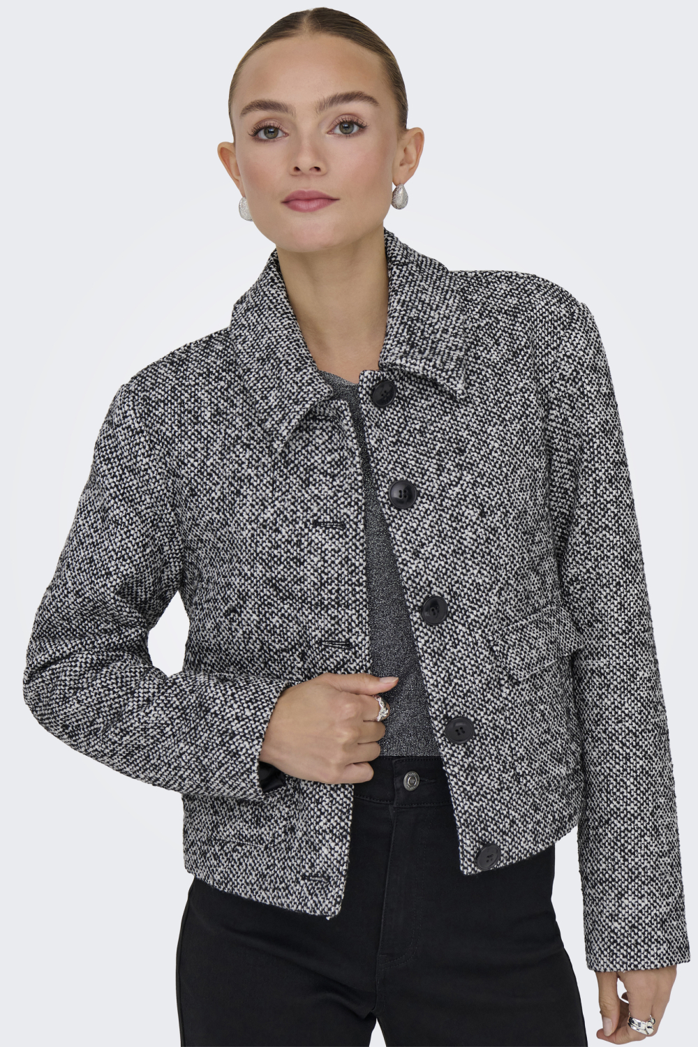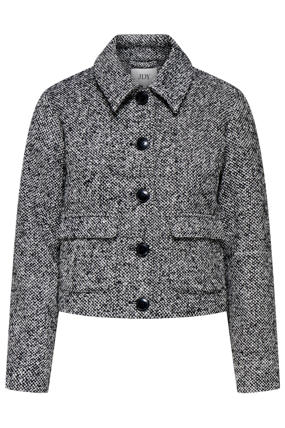Deze stijlvolle pied-de-poule jas van Jacqueline de Yong is een veelzijdige winterjas die niet mag ontbreken in jouw garderobe. De jas heeft een opvallend kort model en is gemaakt van 100% polyester, wat zorgt voor warmte en comfort op koude dagen. De regular fit pasvorm laat je figuur goed uitkomen zonder in te boeten op comfort. De klassieke puntkraag en de knoopsluiting geven een verfijnde uitstraling, terwijl de pied-de-poule patroon de jas een moderne en trendy twist geeft. De jas is perfect voor casual gelegenheden, maar kan ook gemakkelijk gecombineerd worden voor een meer geklede look. Of je nu een dagje gaat shoppen of een gezellig diner hebt, deze jas biedt voldoende flexibiliteit. De lange mouwen zorgen ervoor dat je warm blijft tijdens koude winterdagen, en door de neutrale kleuren past de jas bij vrijwel elke outfit. Voeg deze jas van Jacqueline de Yong toe aan je collectie voor een moeiteloos stijlvolle look in de wintermaanden. Meer informatie: De totale lengte is 50 cm bij maat S.