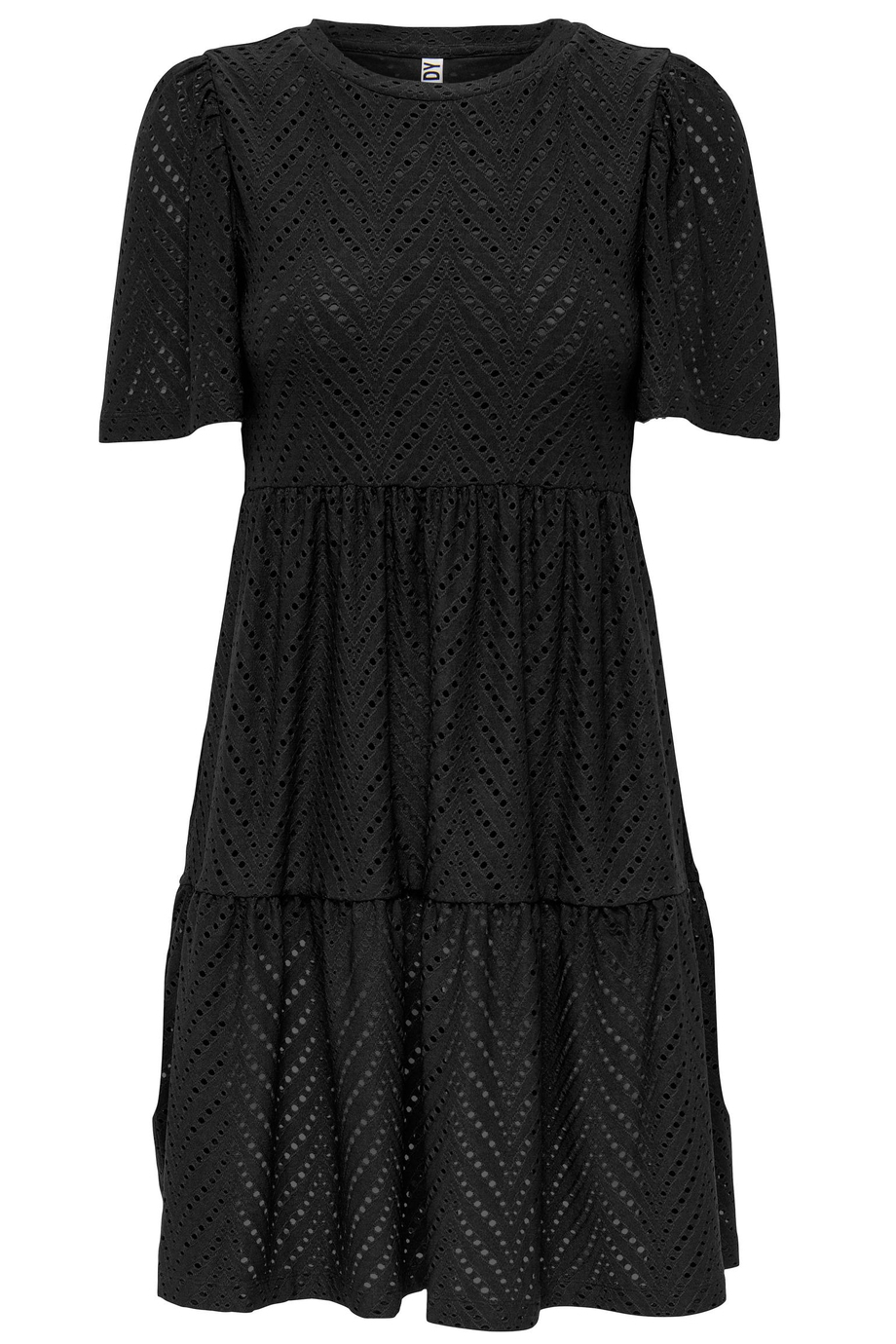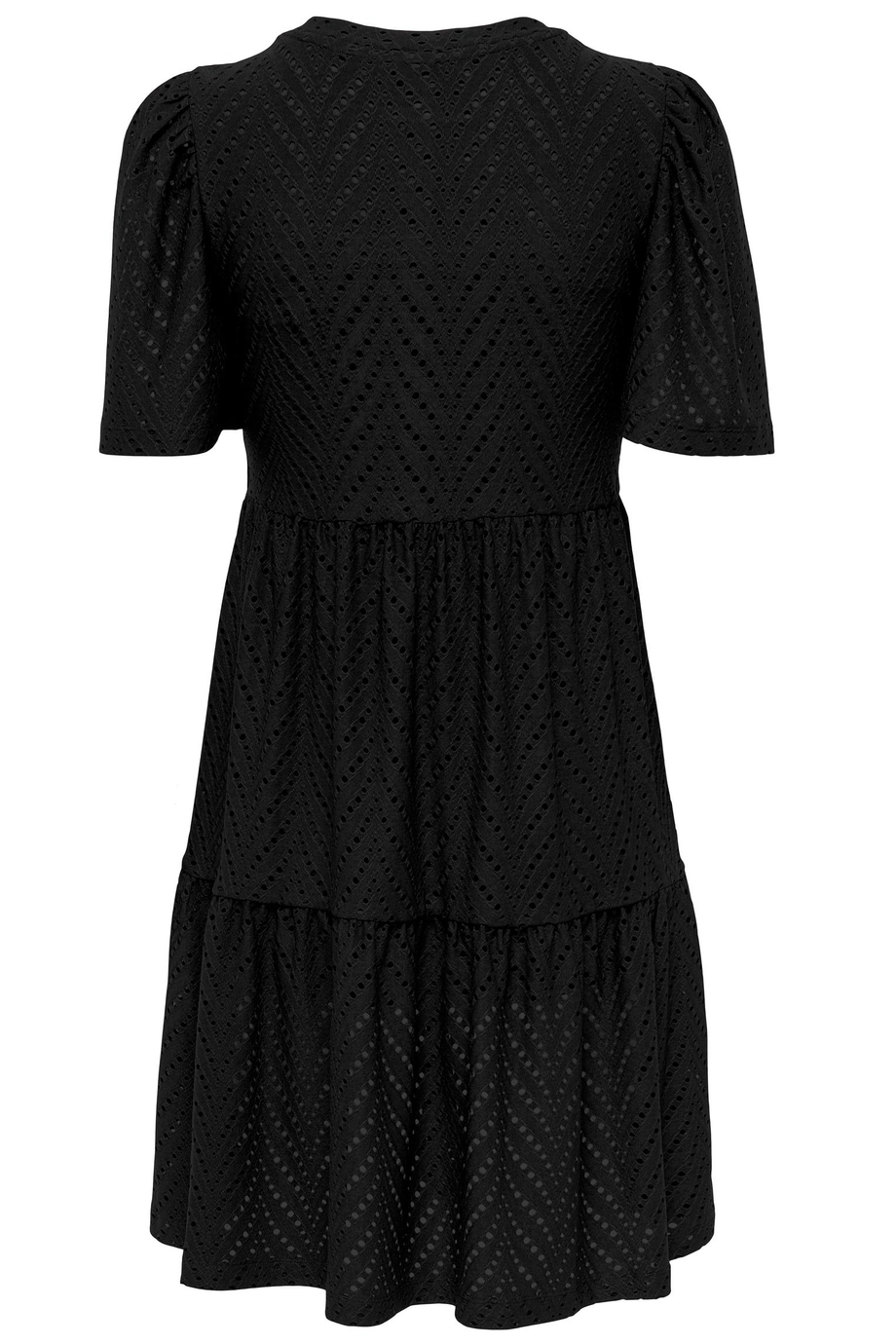 Deze elegante zwarte jurk van Jacqueline de Yong is een stijlvolle keuze voor diverse gelegenheden. De regular fit en halflange lengte zorgen voor een comfortabele pasvorm die door veel vrouwen op prijs wordt gesteld. Het ajourpatroon geeft de jurk een uniek en verfijnd uiterlijk, terwijl de ronde hals en korte mouwen een casual uitstraling behouden. Gemaakt van 95% polyester en 5% elastan, biedt deze jurk zowel comfort als bewegingsvrijheid, wat hem perfect maakt voor een dag op kantoor of een ontspannen diner met vrienden. De veelzijdigheid van deze Jacqueline de Yong jurk maakt hem een waardevolle aanvulling op je garderobe. Dankzij het tijdloze zwarte design kun je hem eenvoudig combineren met verschillende accessoires en schoenen, van stijlvolle hakken tot casual sneakers. Deze jurk brengt een moderne twist in je dagelijkse outfit en blijft onmisbaar voor iedereen die op zoek is naar stijl en eenvoud. Of je nu naar een zomerse picknick gaat of een informele bijeenkomst hebt, deze jurk is altijd een geschikte keuze. Meer informatie: Totale lengte is 90 cm bij maat S.