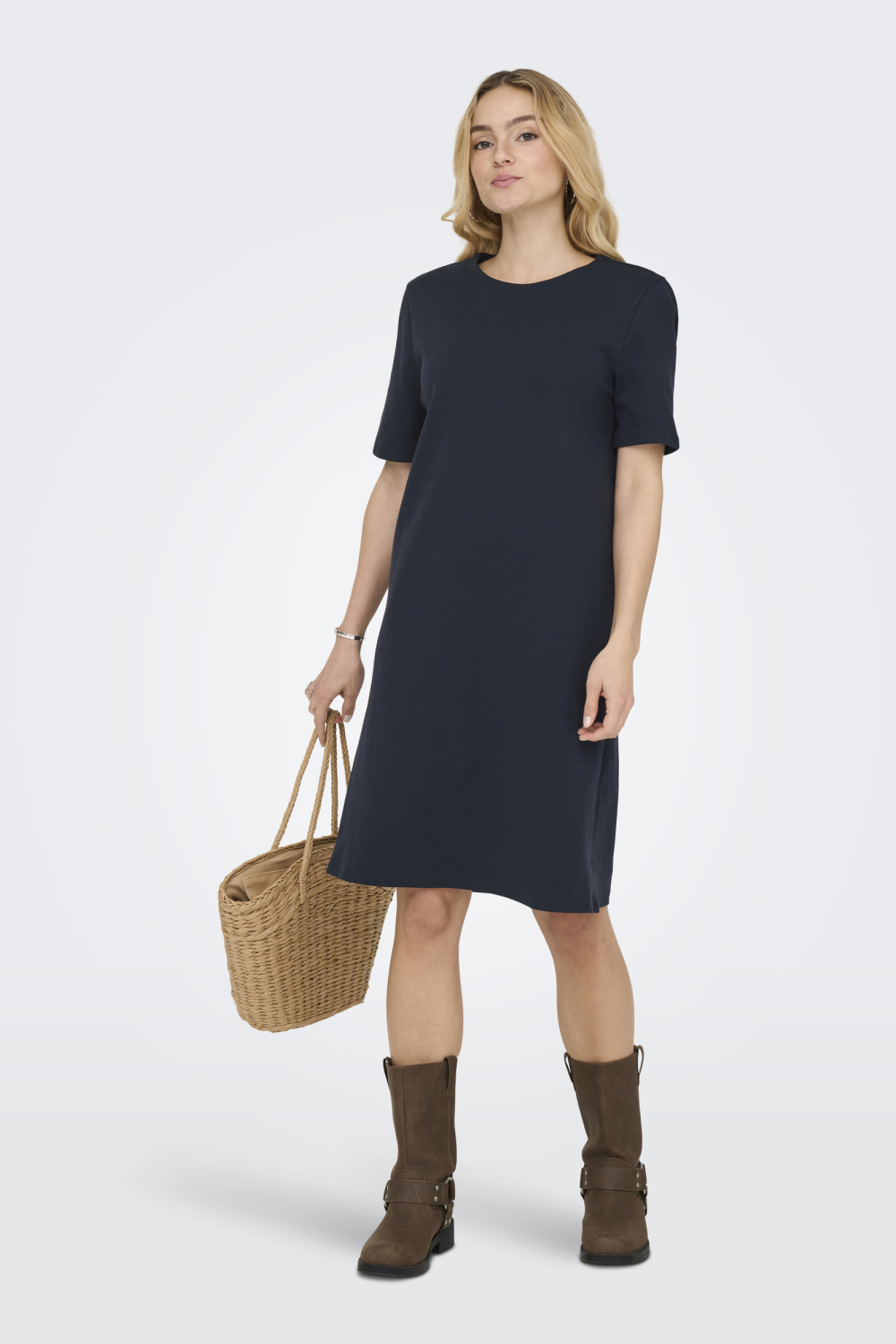 Dit casual jurkje van Jacqueline de Yong combineert stijl en comfort moeiteloos. De jurk is uitgevoerd in de kleur sky captain, een veelzijdige en tijdloze tint die zich gemakkelijk laat combineren. Met een ronde hals en korte mouwen biedt het een ontspannen pasvorm die perfect is voor de lente. De 7/8 lengte zorgt voor een eigentijdse uitstraling, terwijl de mix van 95% katoen en 5% elastaan zorgt voor een aangenaam draagcomfort. Draag het jurkje zorgeloos tijdens een ontspannen dagje uit, of combineer het met een paar opvallende accessoires voor een informele bijeenkomst. De regular fit past prettig en geeft je de vrijheid om je vrij te bewegen. Ideaal voor alledaagse gelegenheden waar je een vleugje stijl wilt uitstralen zonder in te boeten op comfort. Voeg dit veelzijdige stuk toe aan je garderobe en geniet van de eenvoudige elegantie die Jacqueline de Yong biedt.