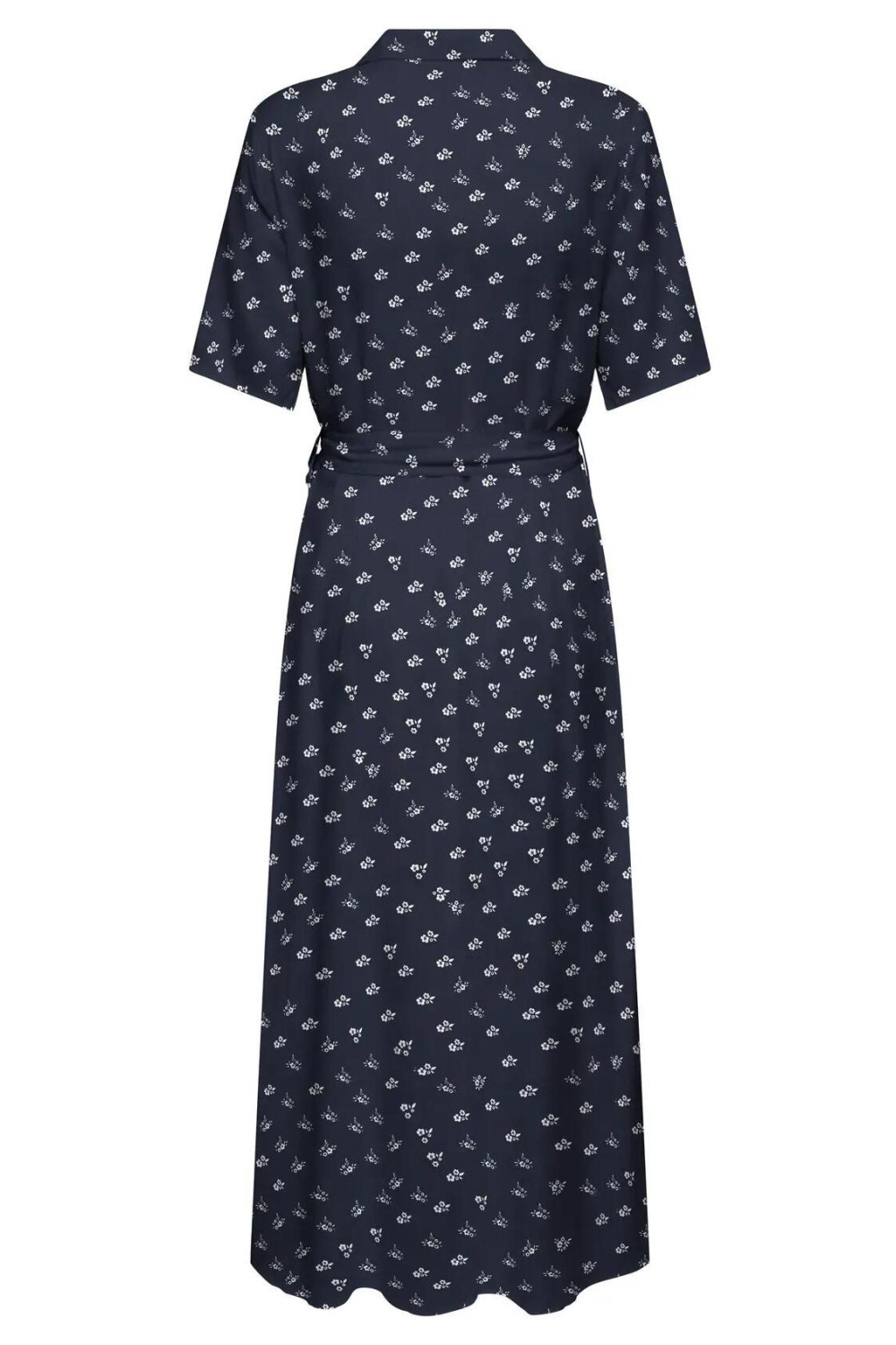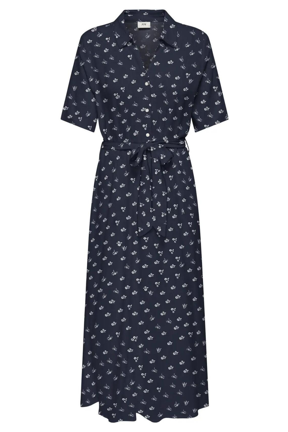 Deze casual lange jurk van Jacqueline de Yong is een stijlvolle keuze voor zomerse dagen. Gemaakt van 100% Viscose Lenzing Ecovero, biedt de jurk een zachte en ademende stof die ideaal is voor warme temperaturen. De speelse bloemenprint over de diepblauwe achtergrond geeft de jurk een frisse uitstraling. Met een regular fit en een puntkraag, gecombineerd met knoopsluiting, krijgt deze jurk een tijdloze en elegante look. De korte mouwen voegen een extra vleugje gemak toe aan een casual outdoor evenement of een ontspannen brunch. Dankzij de lange lengte en de subtiele tailleriem, accentueert deze jurk op subtiele wijze jouw silhouet. Hij kan losjes gedragen worden voor een relaxte dag in het park, of stel hem strakker af voor een iets formelere setting. De jurk past perfect bij flatjes of sandalen voor een dagje uit, maar kan ook stijlvol gecombineerd worden met een paar hakken voor een avondje uit. Deze jurk van Jacqueline de Yong biedt een veelzijdige oplossing voor verschillende gelegenheden zonder in te boeten op comfort en stijl. Meer informatie: De totale lengte is 131 cm bij maat S.