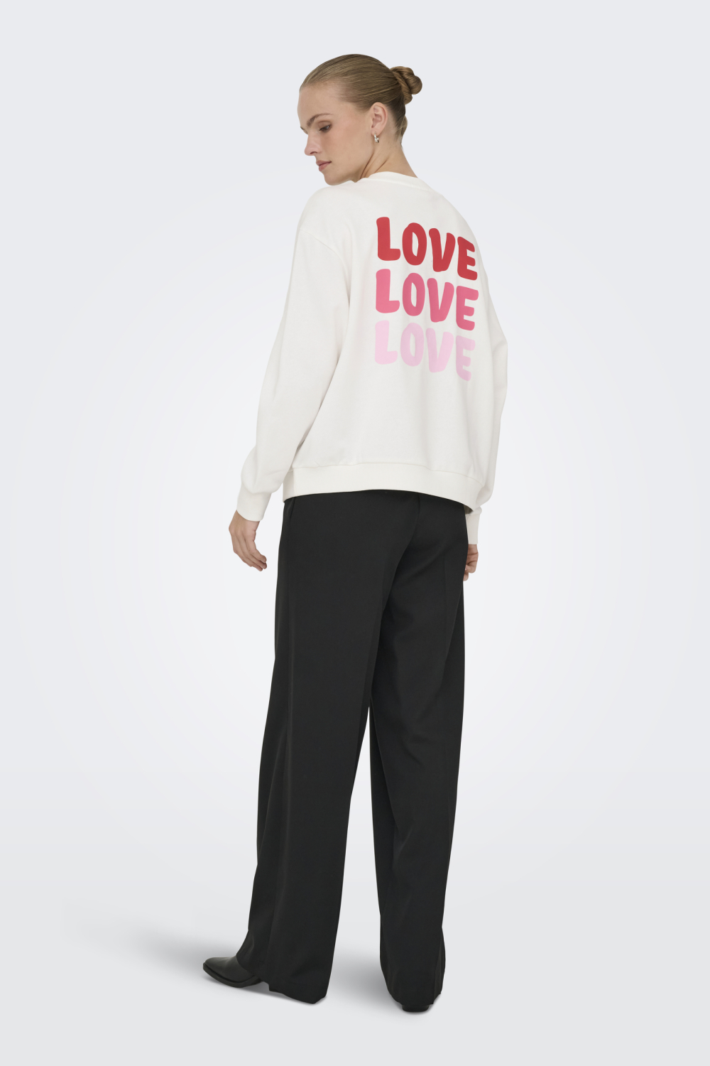Deze casual sweater van Jacqueline de Yong straalt subtiele elegantie uit. Uitgevoerd in de kleur "Cloud dancer," valt deze sweater op door zijn eigentijdse tekstpatroon op de rug. De woorden "LOVE LOVE LOVE" in verschillende tinten rood en roze geven een speelse twist aan de minimalistische basis. Met zijn regular fit en ronde hals biedt deze sweater een comfortabele pasvorm die ideaal is voor een ontspannen dagje uit. De Jacqueline de Yong sweater is perfect voor de lente met zijn lichte stof en normale lengte. Draag hem met een jeans voor een casual look, of combineer met een wijde broek voor een moeiteloze chic. De lange mouwen maken het een geschikte keuze voor koelere lentedagen. Of je nu een rustige wandeling maakt in het park of een informeel samenzijn hebt met vrienden, deze sweater geeft je outfit een speelse en toch stijlvolle touch. De duurzame nadruk van het merk draagt bij aan een bewuste modekeuze.
