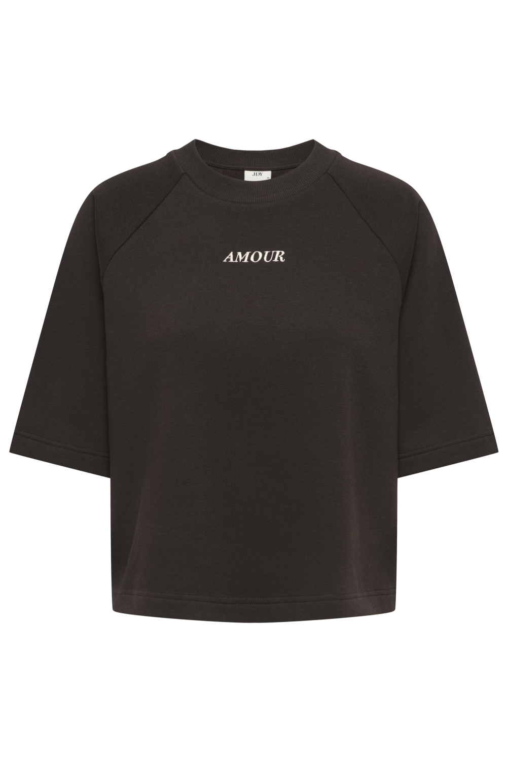 Deze casual sweater van Jacqueline de Yong is een veelzijdig element voor je kledingkast. Dankzij de comfortabele mix van 68% katoen en 32% polyester, biedt de sweater zacht draagcomfort. De reguliere pasvorm met driekwart mouwen zorgt voor een eigentijdse look, ideaal voor het lenteseizoen. Het subtiele ontwerp met de opdruk "Amour" op de borst voegt een vleugje flair toe zonder te overheersen. De sweater is perfect voor diverse informele gelegenheden. Draag hem bijvoorbeeld tijdens een ontspannen dagje in het park of een casual ontmoeting met vrienden. Combineer de sweater met een lichte jeans of comfortabele chino's voor een moeiteloze, maar stijlvolle uitstraling. Met de neutrale donkere kleur past hij gemakkelijk bij verschillende stijlen en kleuren, waardoor hij een onmiskenbare toevoeging aan je collectie is. De ronde halslijn benadrukt de ontspannen stijl, terwijl je er toch netjes uitziet.