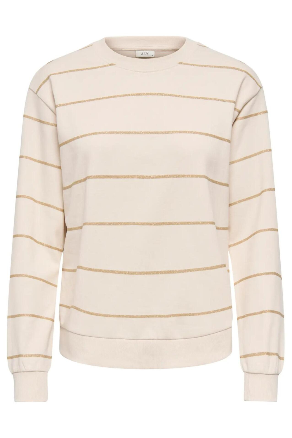 Deze casual sweater van Jacqueline de Yong is een veelzijdige keuze voor je garderobe. Gemaakt van een comfortabele combinatie van 60% katoen en 40% polyester, biedt deze sweater zowel zachtheid als duurzaamheid. Het opvallende ontwerp met subtiele glitterstrepen op een zachte crèmekleurige achtergrond geeft een speels maar verfijnd accent. De ronde hals en de lange mouwen maken het een ideale keuze voor de lente, wanneer je iets stijlvols en praktisch nodig hebt. De regular fit zorgt voor een ontspannen pasvorm, waardoor deze sweater geschikt is voor diverse gelegenheden. Draag hem op een jeans voor een ontspannen dag in de stad of combineer met een rok voor een meer vrouwelijke look. Met zijn normale lengte is deze sweater eenvoudig te matchen met verschillende kledingstukken. Of je nu een informele bijeenkomst hebt of een dagje uit plant, deze Jacqueline de Yong sweater biedt je een moeiteloze stijl met een vleugje glamour.