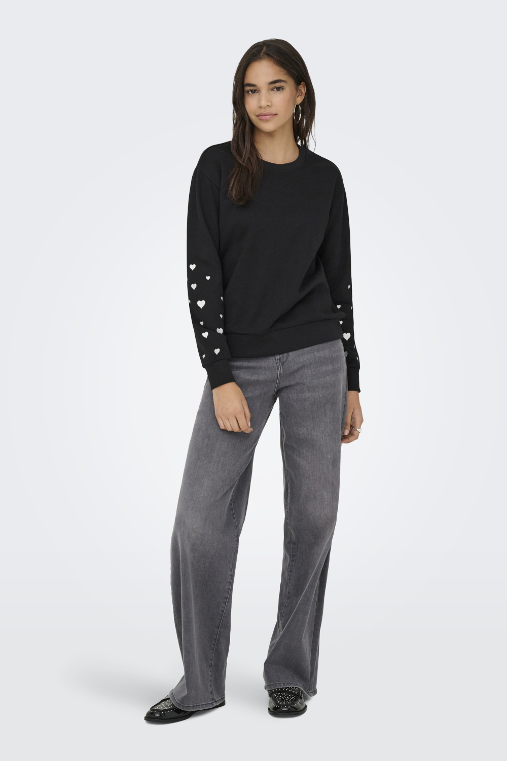 Deze casual sweater van Jacqueline de Yong is een stijlvolle aanvulling op je wintergarderobe. Met een regular fit en een comfortabele ronde hals, is deze sweater ideaal voor verschillende gelegenheden. Gemaakt van een mix van 60% katoen en 40% polyester, biedt hij een zachte en warme draagervaring, perfect voor de koudere maanden. De speelse hartjesprint op de mouwen geeft deze zwarte sweater een unieke touch, waardoor je look net dat beetje extra krijgt. Of je nu naar school gaat of een informele bijeenkomst hebt, deze sweater is eenvoudig te combineren met allerlei outfits. Draag hem met je favoriete jeans voor een relaxte uitstraling, of kies een nette broek voor een iets formelere look. De lange mouwen en de normale lengte maken hem bijzonder veelzijdig. Of je nu thuis op de bank zit of een wandeling maakt door het park, deze Jacqueline de Yong sweater zorgt voor stijl en comfort.