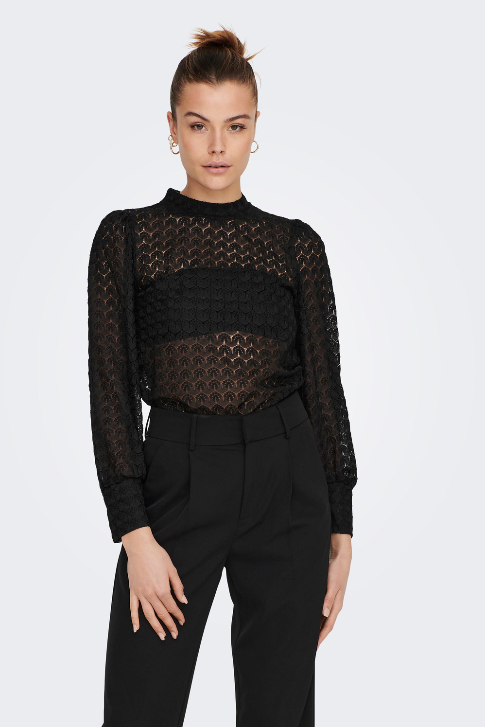 Dit elegante zwarte T-shirt van Jacqueline de Yong is een stijlvolle toevoeging aan jouw garderobe. Het T-shirt is vervaardigd van 100% polyester en heeft een moderne ajour patroon dat een subtiele transparantie creëert. De hoge hals en de lange mouwen zorgen voor een tijdloos silhouet, ideaal voor zowel dagelijks gebruik als speciale gelegenheden. Met zijn regular fit is dit T-shirt perfect voor diverse stylingopties. Combineer het met een klassieke pantalon voor een chique avondlook, of draag het met een jeans voor een casual, maar verfijnde outfit. De knoopsluiting aan de achterkant voegt een verfijnd detail toe, terwijl het materiaal zorgt voor comfort gedurende alle seizoenen. Laat je inspireren door de veelzijdigheid van dit unieke kledingstuk, dat in elke situatie een passende keuze biedt.