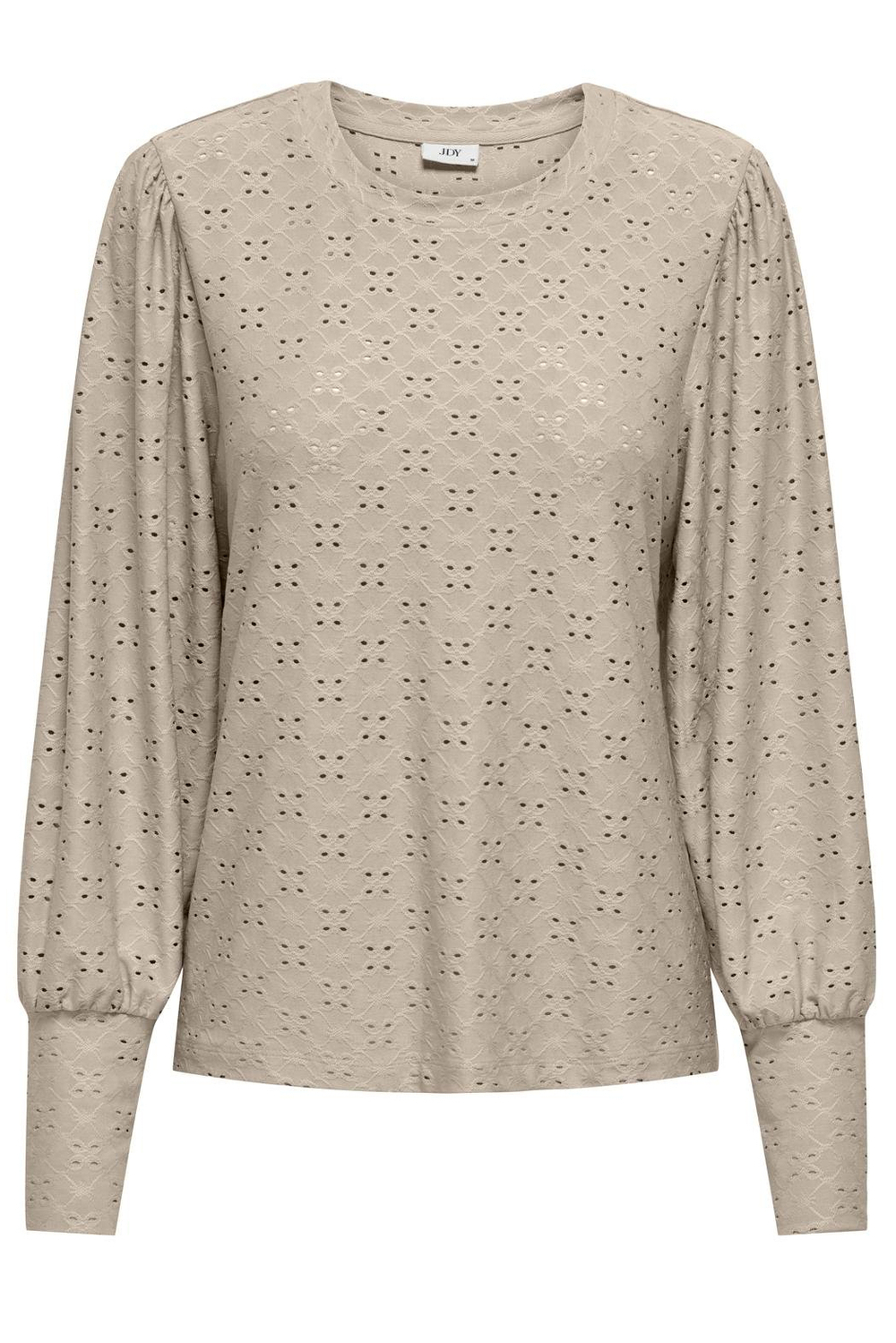 Deze casual blouse van Jacqueline de Yong biedt een stijlvolle en comfortabele keuze voor elke basisgarderobe. Gemaakt uit 92% polyester en 8% elastan, zorgt deze blouse voor een aangename pasvorm die de hele dag goed blijft zitten. De cementkleurige stof met ajourpatroon geeft een subtiele textuur en voegt een speelse touch toe aan je outfit. De blouse heeft een regular fit en de lange mouwen zijn perfect voor koelere dagen of om een meer geklede uitstraling te creëren. Met zijn ribkraag en de normale lengte kun je deze blouse makkelijk combineren met zowel een jeans voor een casual look als met een rok voor meer formele gelegenheden. Door de subtiele details past de blouse goed bij een dagelijkse setting, zoals een dag op kantoor of lunch met vrienden. Dankzij de veelzijdige stijl is deze blouse een betrouwbare keuze die bij verschillende outfits en gelegenheden past.