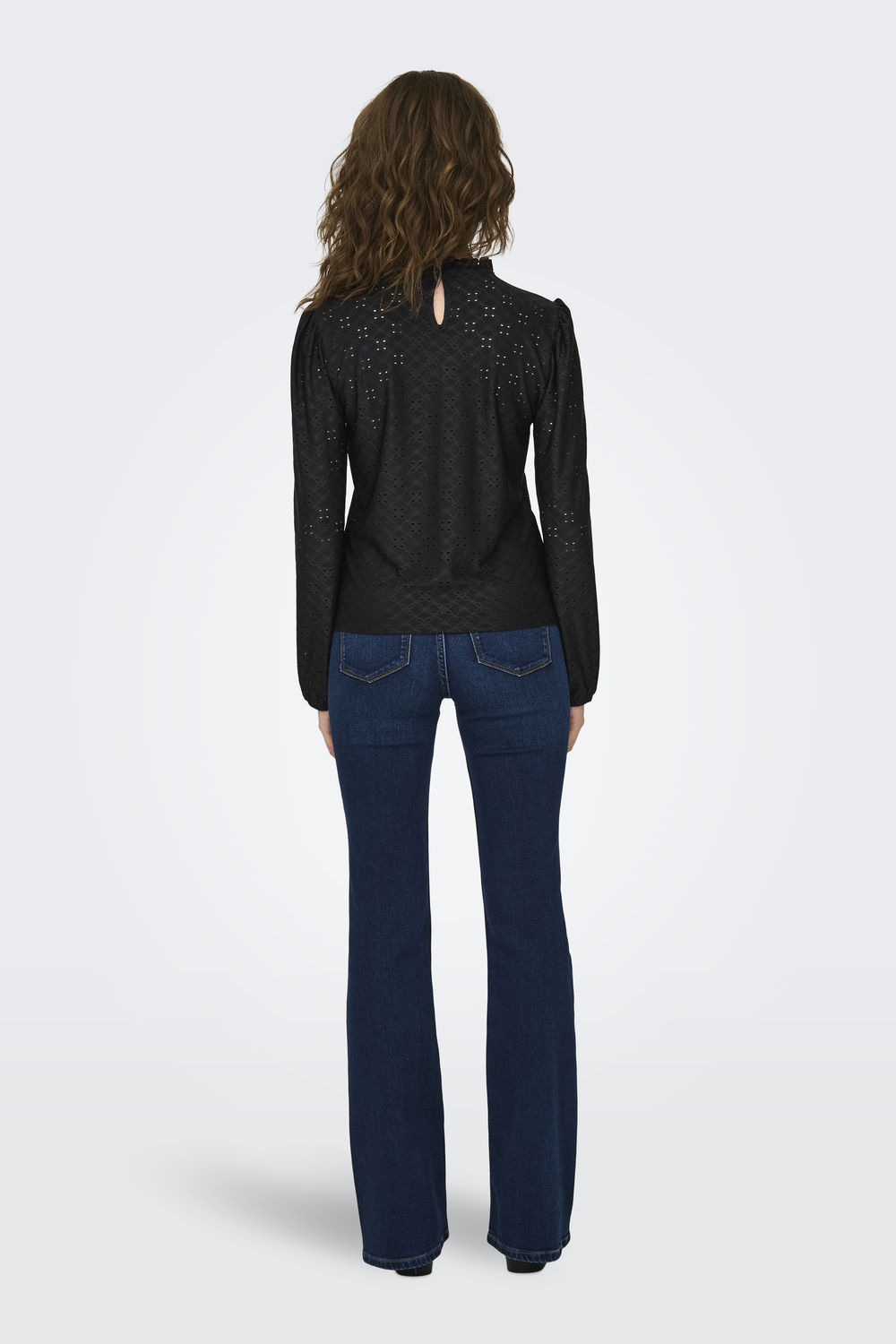 Dit elegante T-shirt van Jacqueline de Yong is een verfijnde toevoeging aan je herfstgarderobe. De zwarte ajourpatroon geeft het shirt een stijlvolle uitstraling, terwijl het materiaal van 92% polyester en 8% elastaan zorgt voor een comfortabele en soepele pasvorm. De high neck en lange mouwen maken het een veelzijdig stuk dat makkelijk te combineren is met verschillende outfits. Dankzij de subtiele knoopsluiting aan de achterkant, voeg je een vleugje elegantie toe aan je dagelijkse look. Of je nu een casual dag op kantoor hebt of een gezellige avond uit gaat met vrienden, dit Jacqueline de Yong T-shirt slaat altijd de juiste toon. De normale lengte en regular fit passen perfect bij een jeans of een nette broek, waardoor het een ideale keuze is voor elke gelegenheid. De ajourpatroon biedt een speelse twist zonder aan verfijning in te boeten, waardoor je steeds zelfverzekerd voor de dag komt.
